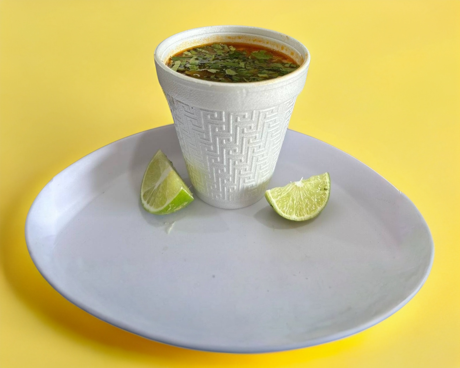 Plato de birria chico con 150 gr de carne, acompañado de nuestras 3 salsas, verdura, tortilla y consome