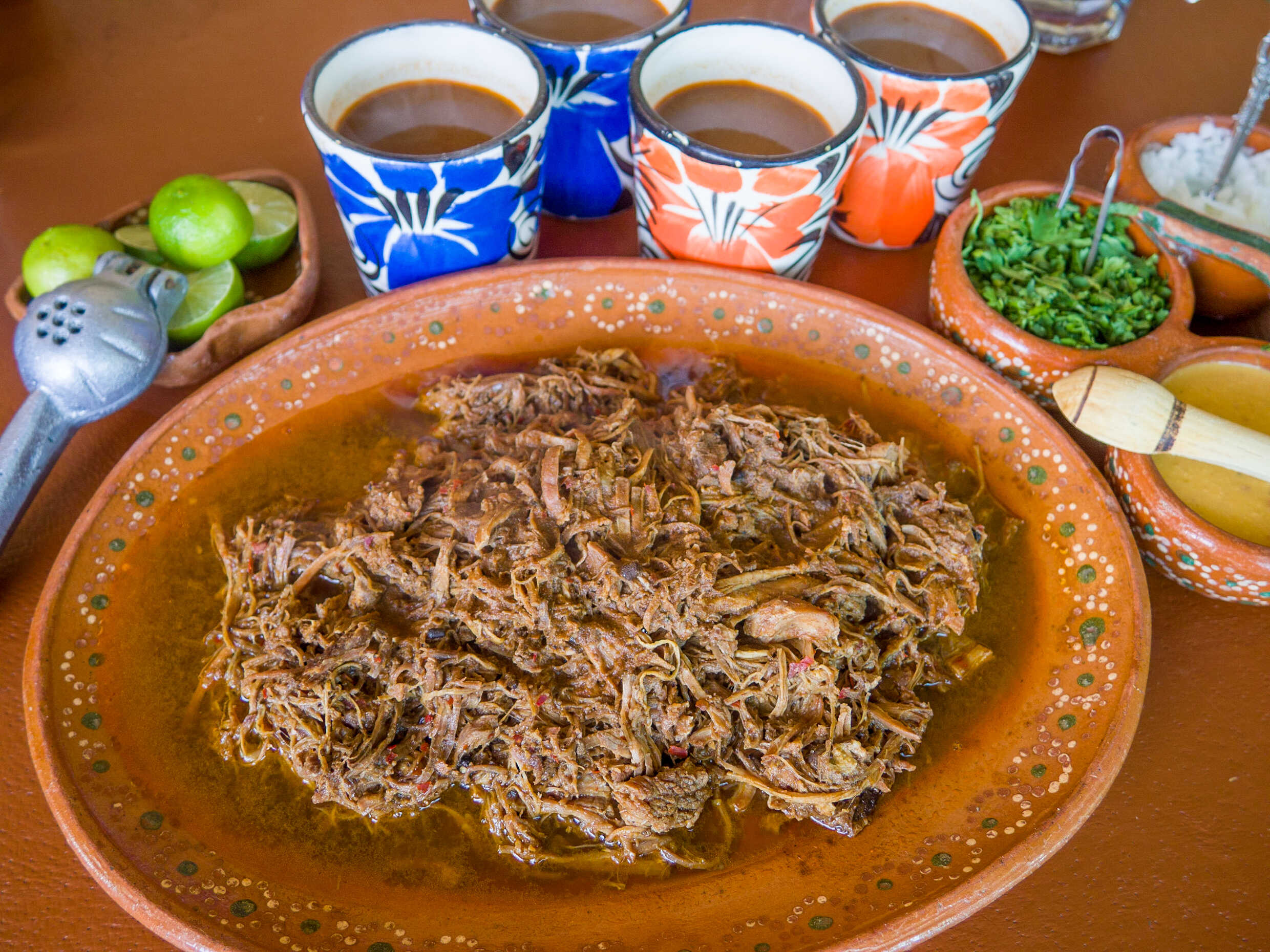 Medio Kilo de Barbacoa Borracha de res. Incluye medio litro de consomé, tortilla recién hecha a mano, cebolla, cilantro, salsa borracha, salsa de cacahuate y limones.