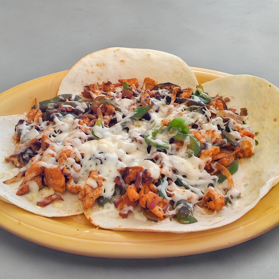 Alambre de Queso Fundido con Bistec, chorizo y Pastor acompañado de tortillas de maíz