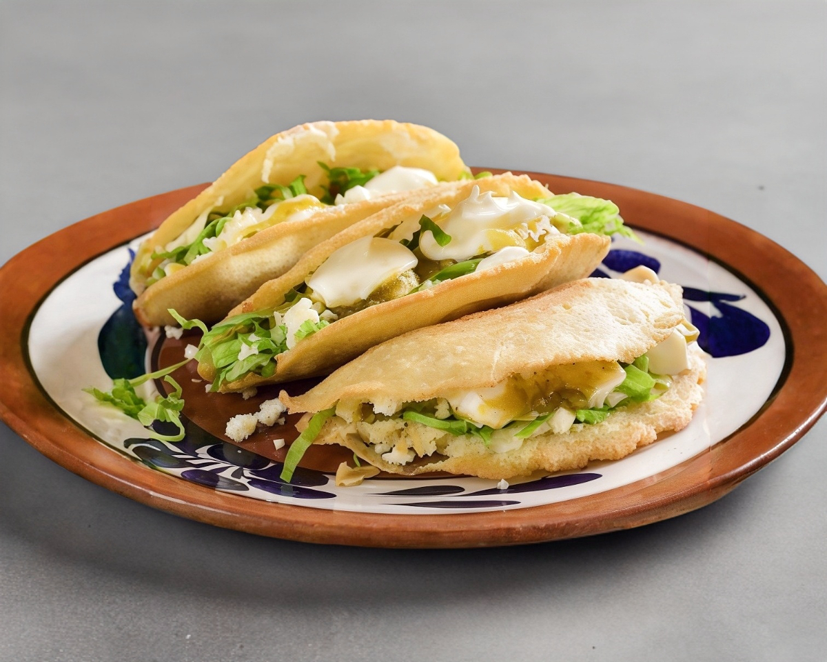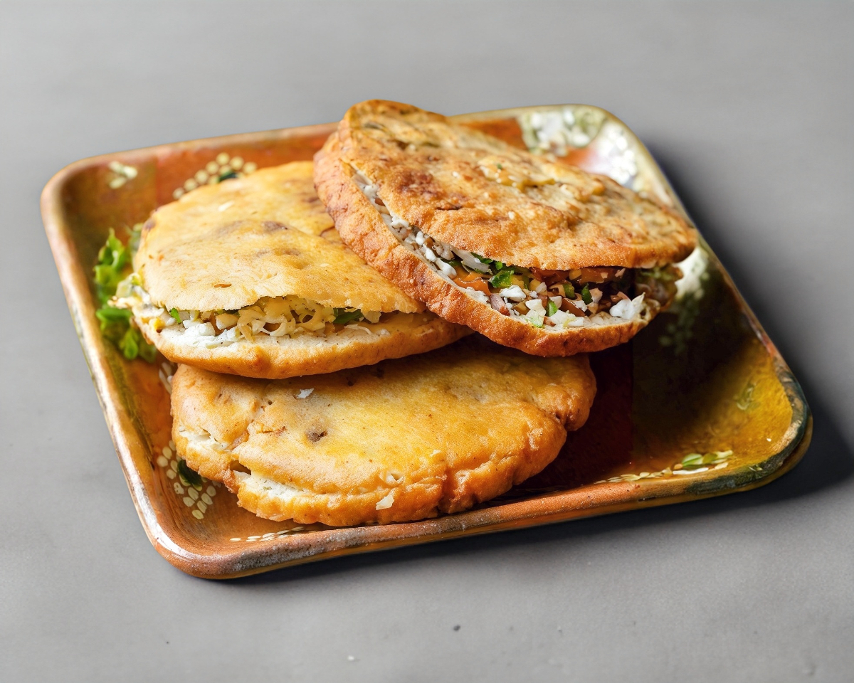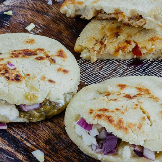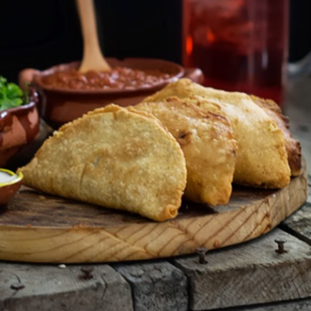 Orden de 4 rellenas de pollo incluye ensalada y salsa.