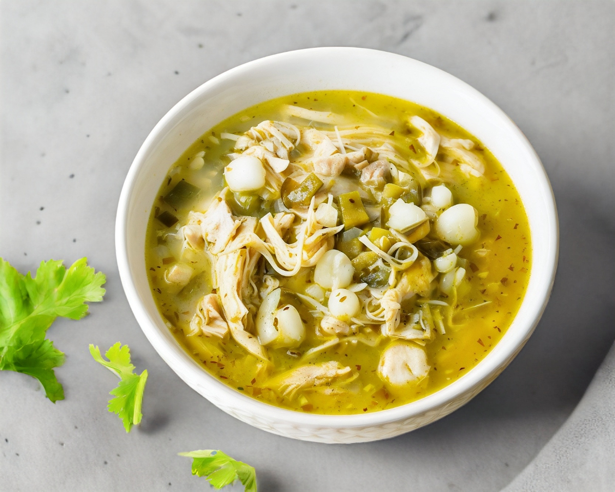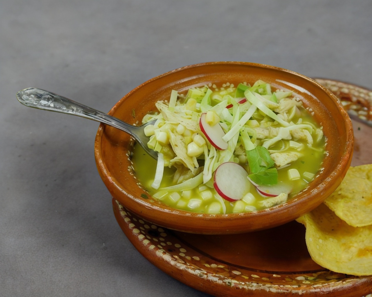 1/2 Litro pozole verde de pollo incluye tostadas, verdura y salsa.