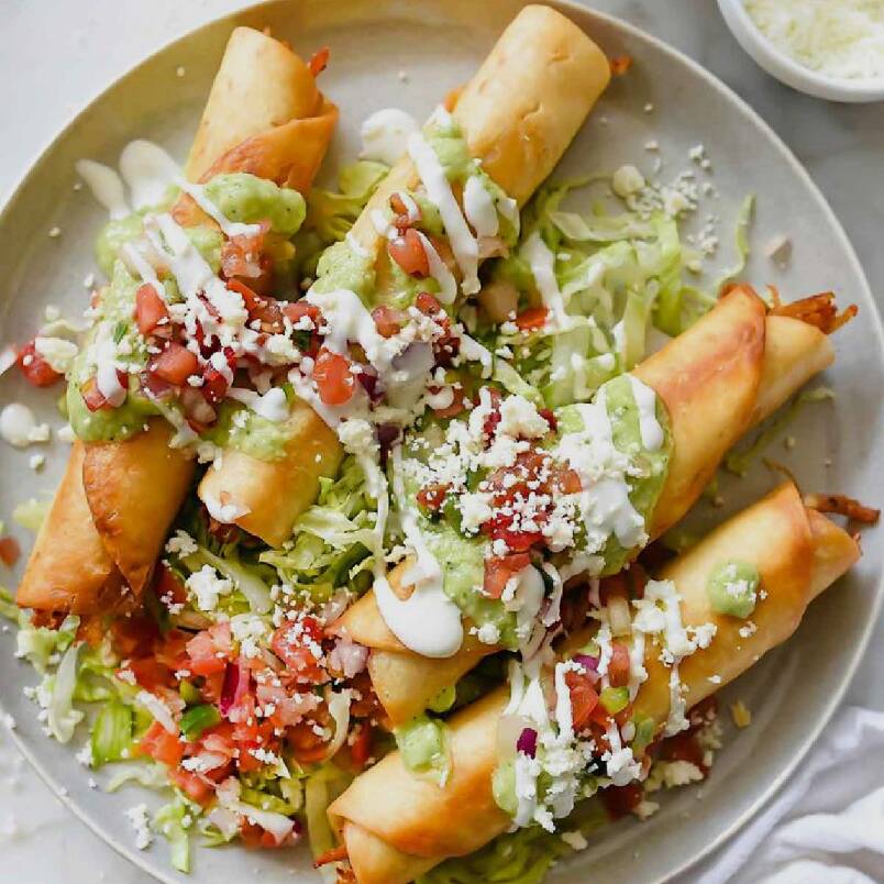Orden de 5 tacos dorados incluye ensalada y salsa.