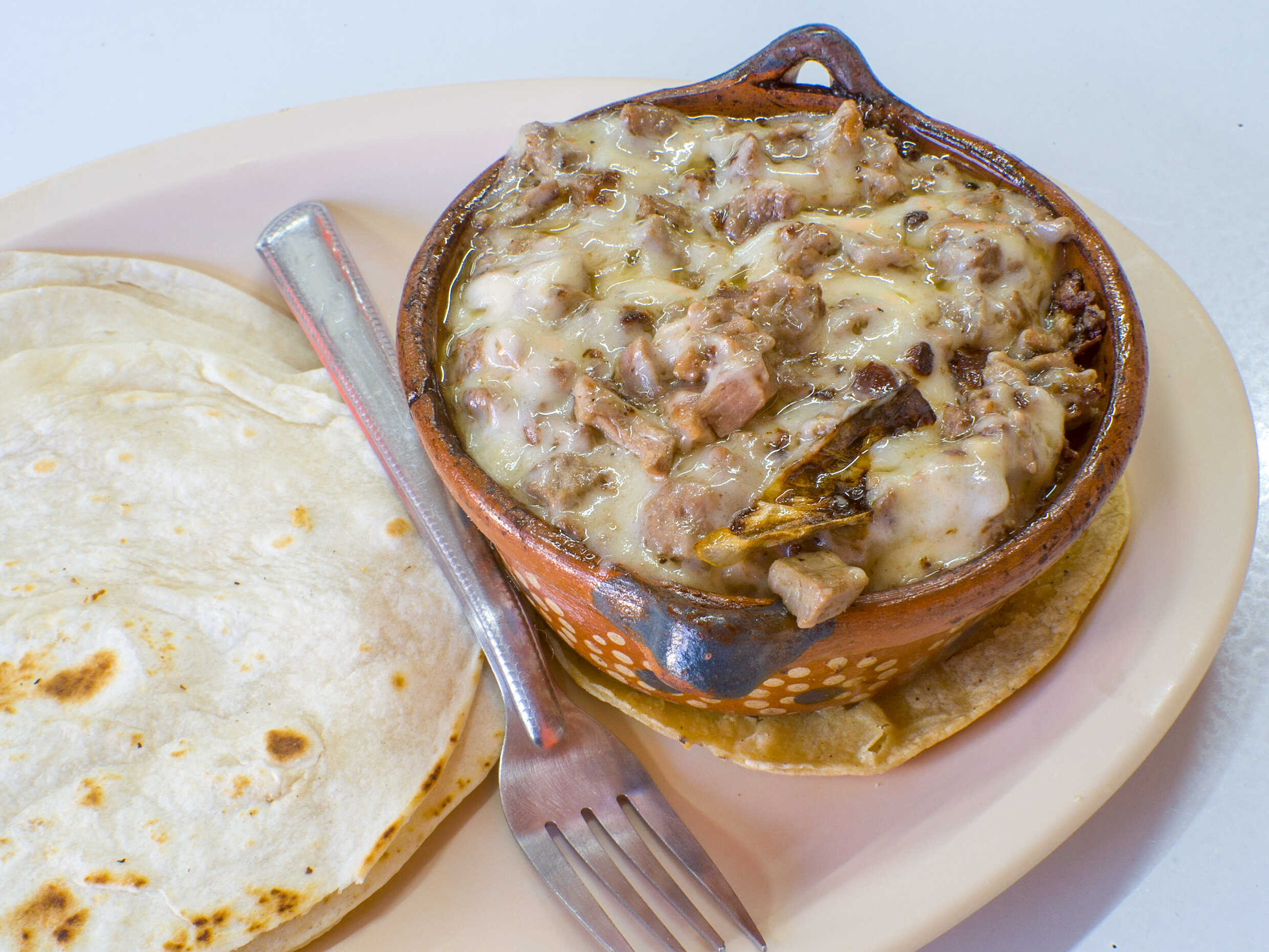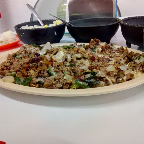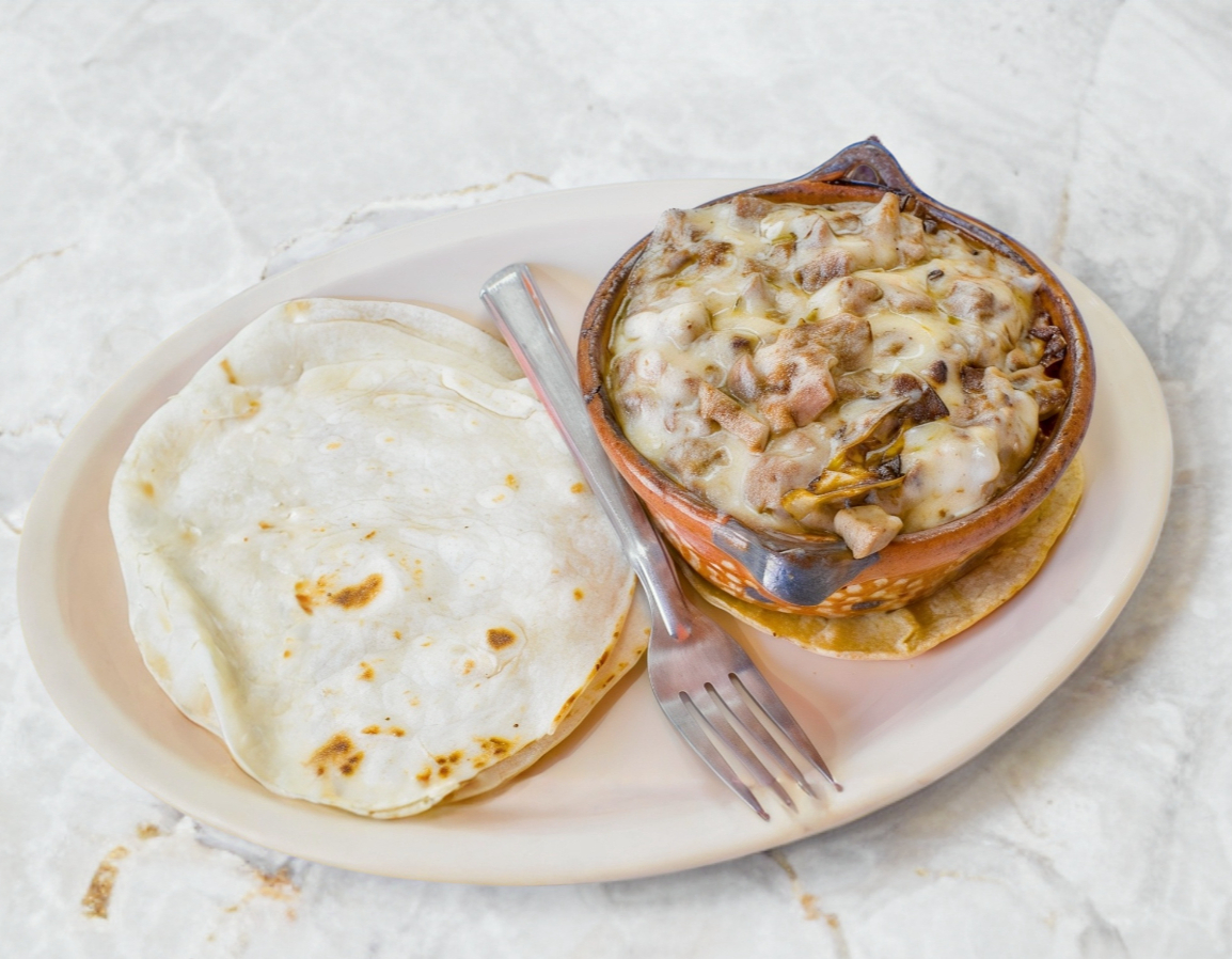 Chuleta, piña, nopal, jamón, queso y rajas.