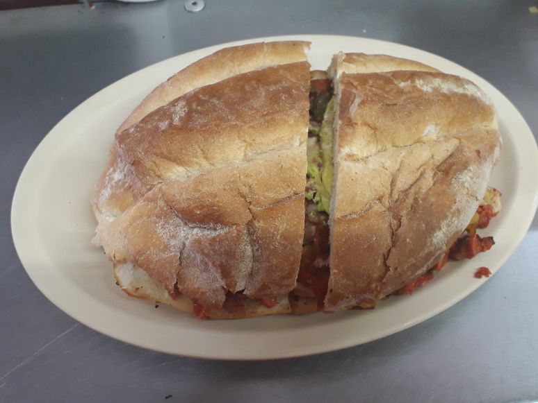 Chorizo, morrón, cebolla, pastor, jamón y queso.