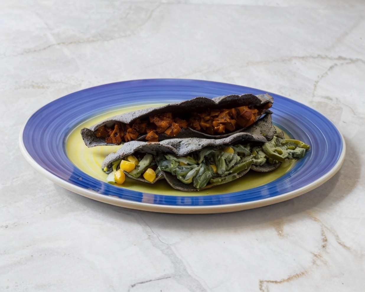 De maiz azul cocida en plancha.