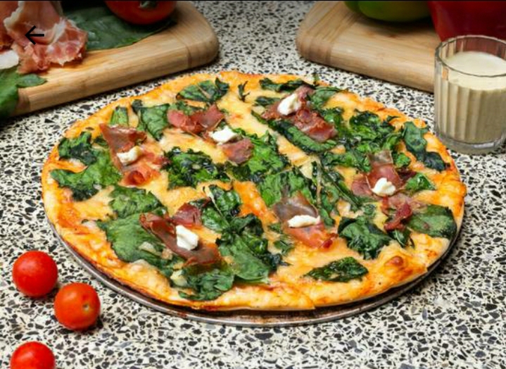 Jamón selva negra, espinacas, aceituna negra y philadelphia.