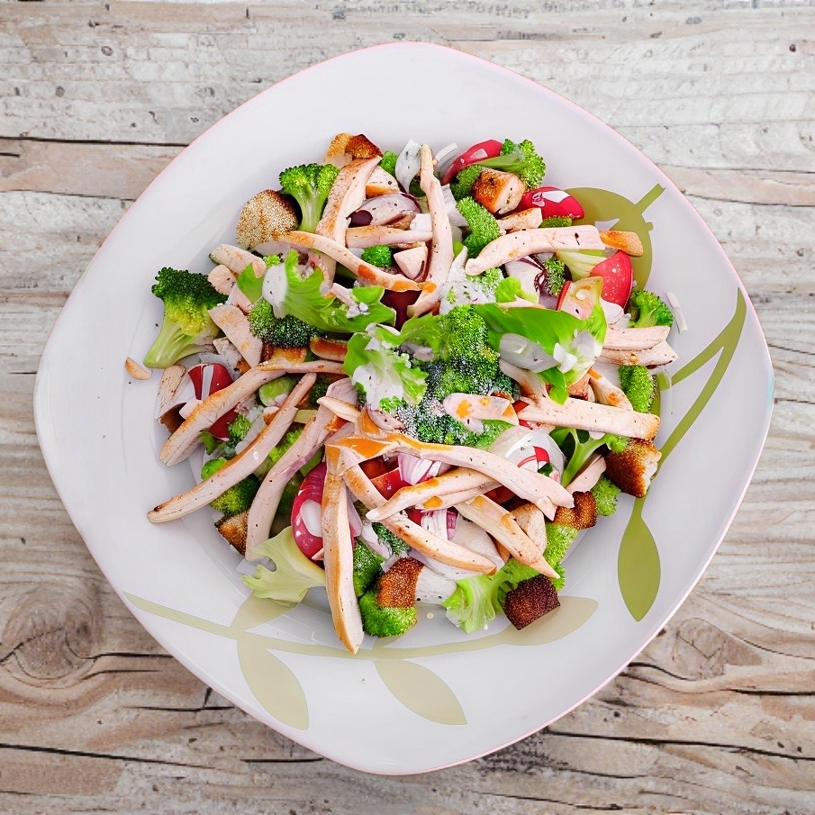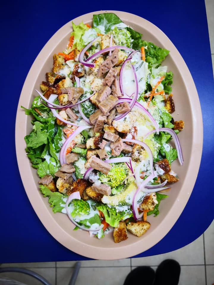 Lechuga, brócoli, crotones, queso parmesano, jitomate, cebolla y aderezo ranch.