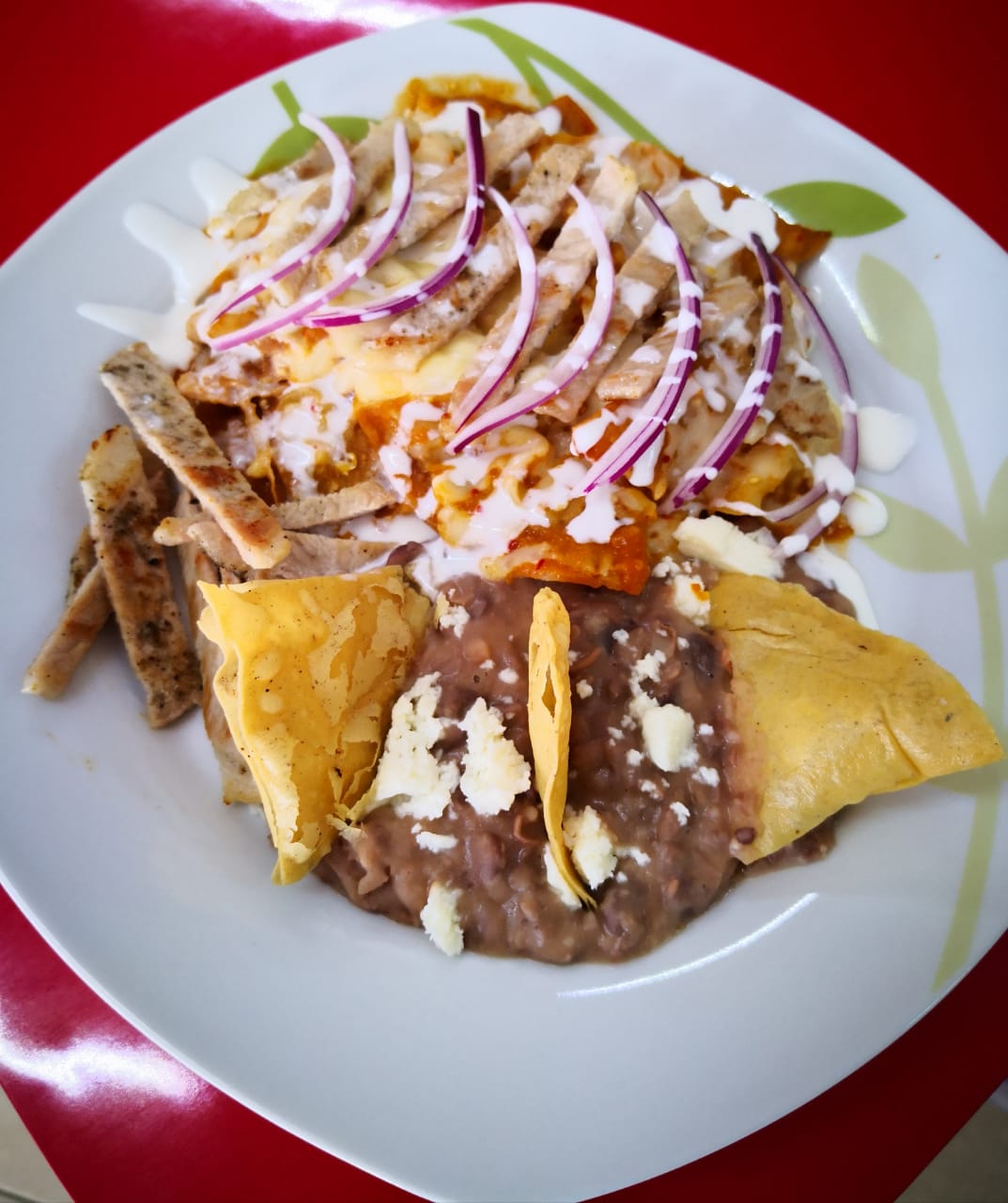 Rojos o verdes, con frijoles y cebolla, crema opcional.
