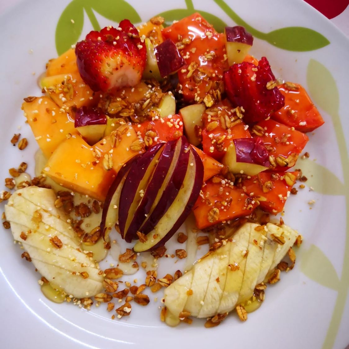 Fruta de temporada, adornado con fresas, granola, lechera o miel.