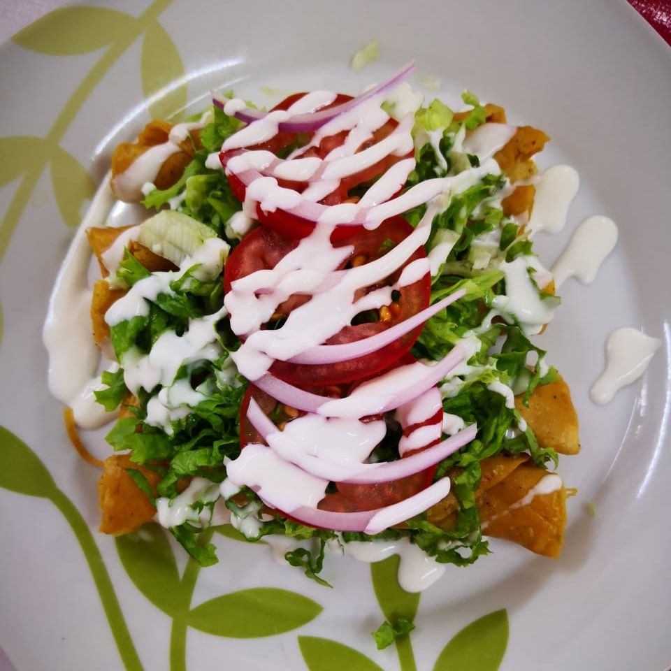 5 Piezas, rellenas de pollo, lechuga, jitomate, cebolla y crema.