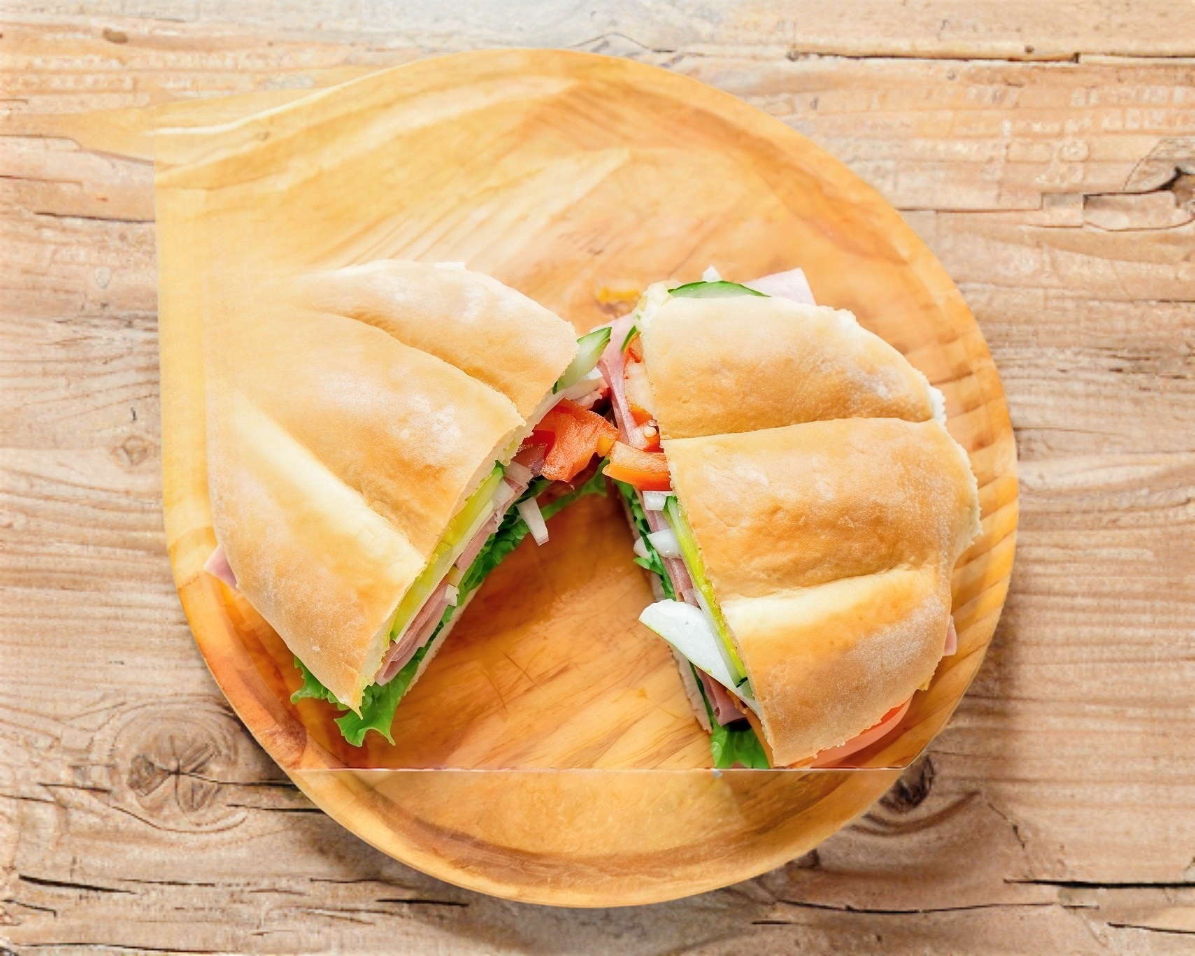 Pan integral, jamon, queso asadero, queso amarillo, chorizo, jitomate, crema, aguacate, chile, cebolla y mayonesa
