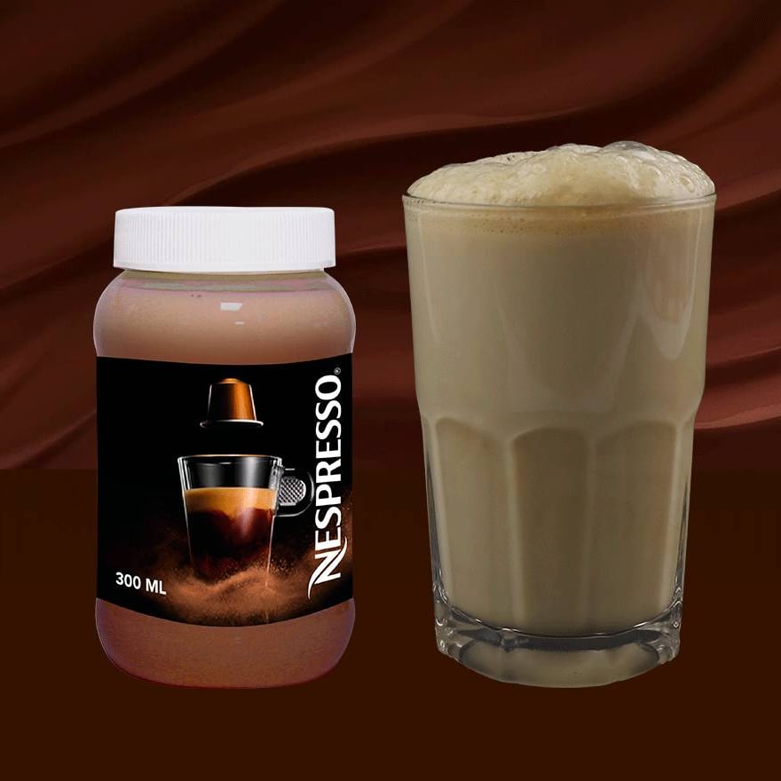 Café Moka Nespresso acompañado con Leche Santa Clara, Hersey y canela, en presentación de 355 ml