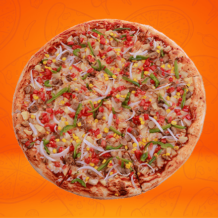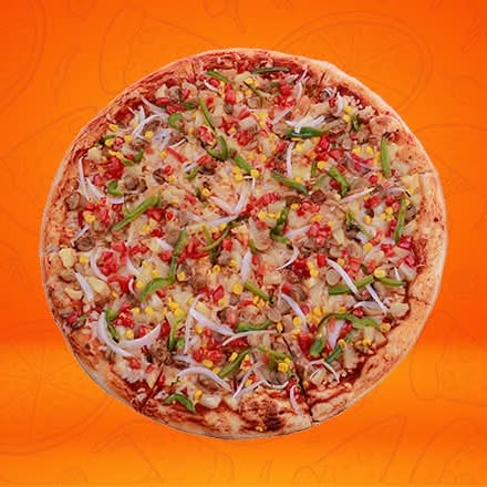 Morrón, cebolla, elote piña, champiñones y jitomate