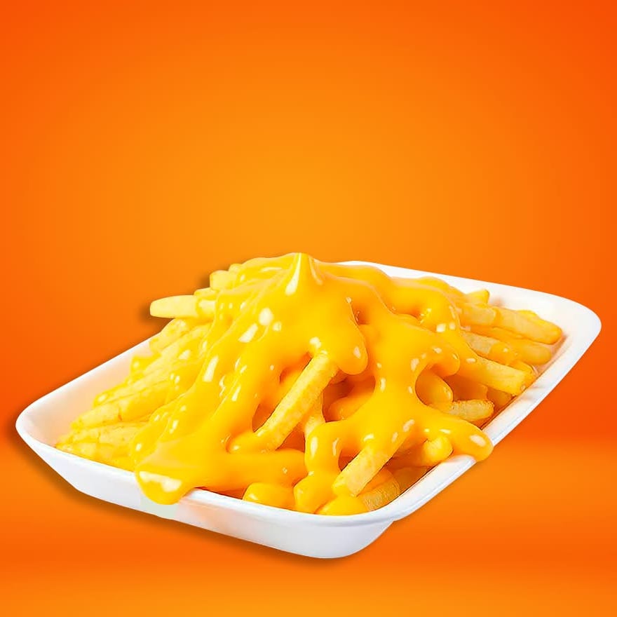 Crujientes papas doraditas por fuera y suaves por dentro bañadas con delicioso queso cheddar fundido.