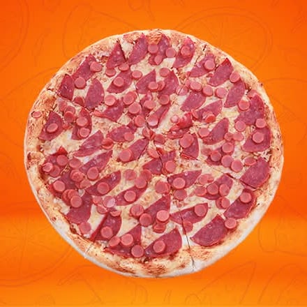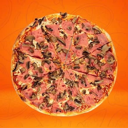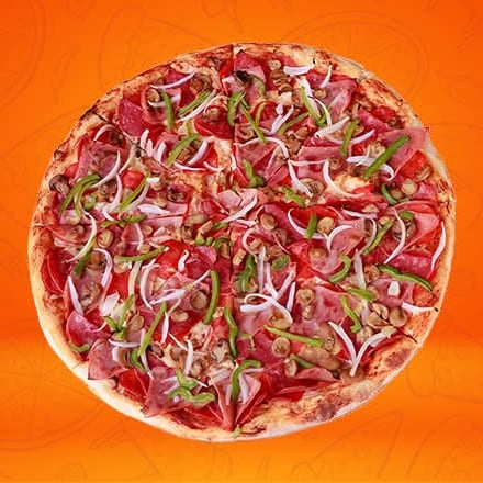 Jamón, morrón, cebolla, champiñones, salami y pepperoni