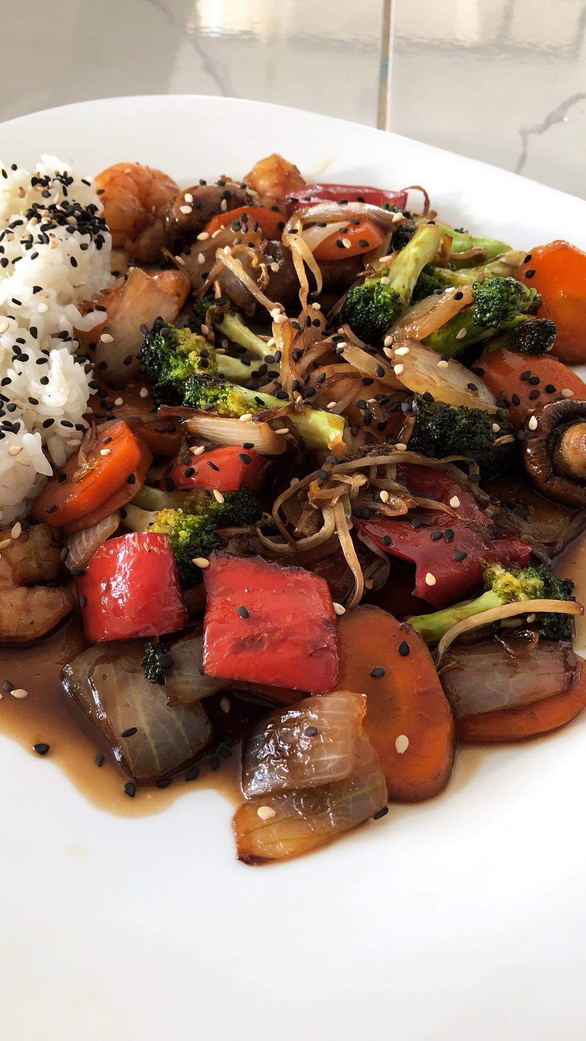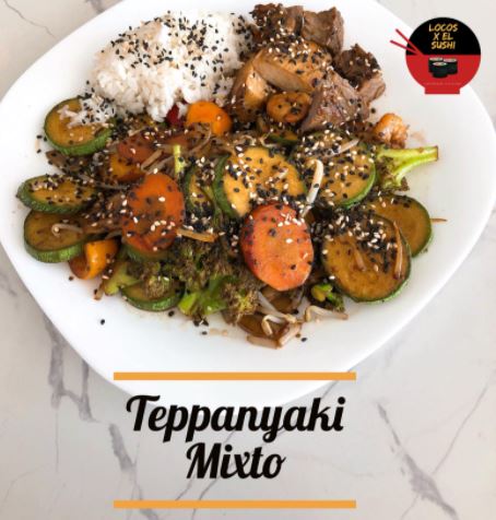 Verduras a la plancha, sazonadas y bañadas en nuestra salsa teriyaki, acompañadas de la proteína de tu elección y una guarnición de arroz gohan.