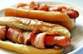 Salchicha de pavo, tocino, jitomate, cebolla asada, jalapeño, cátsup, mayonesa y mostaza.