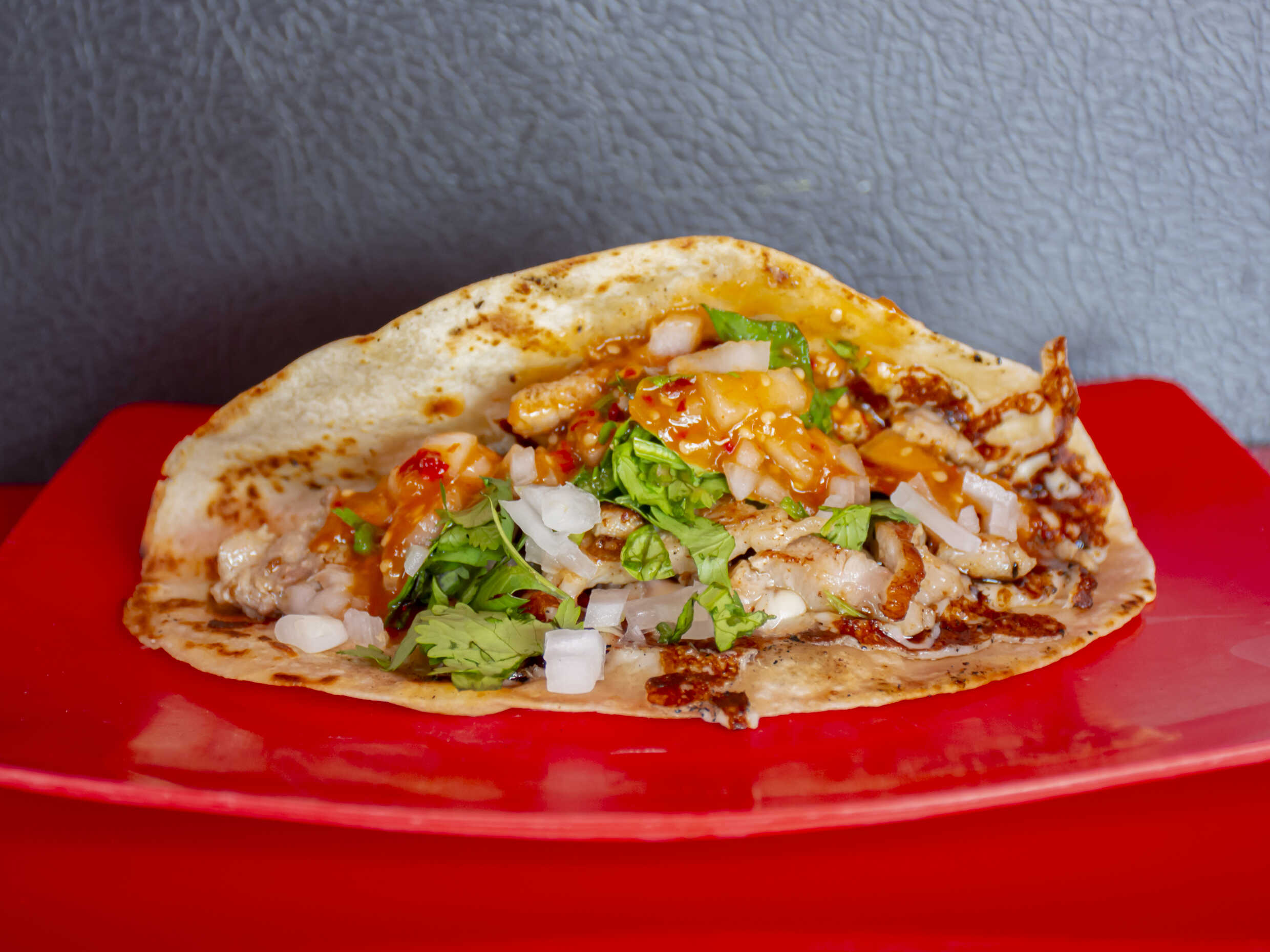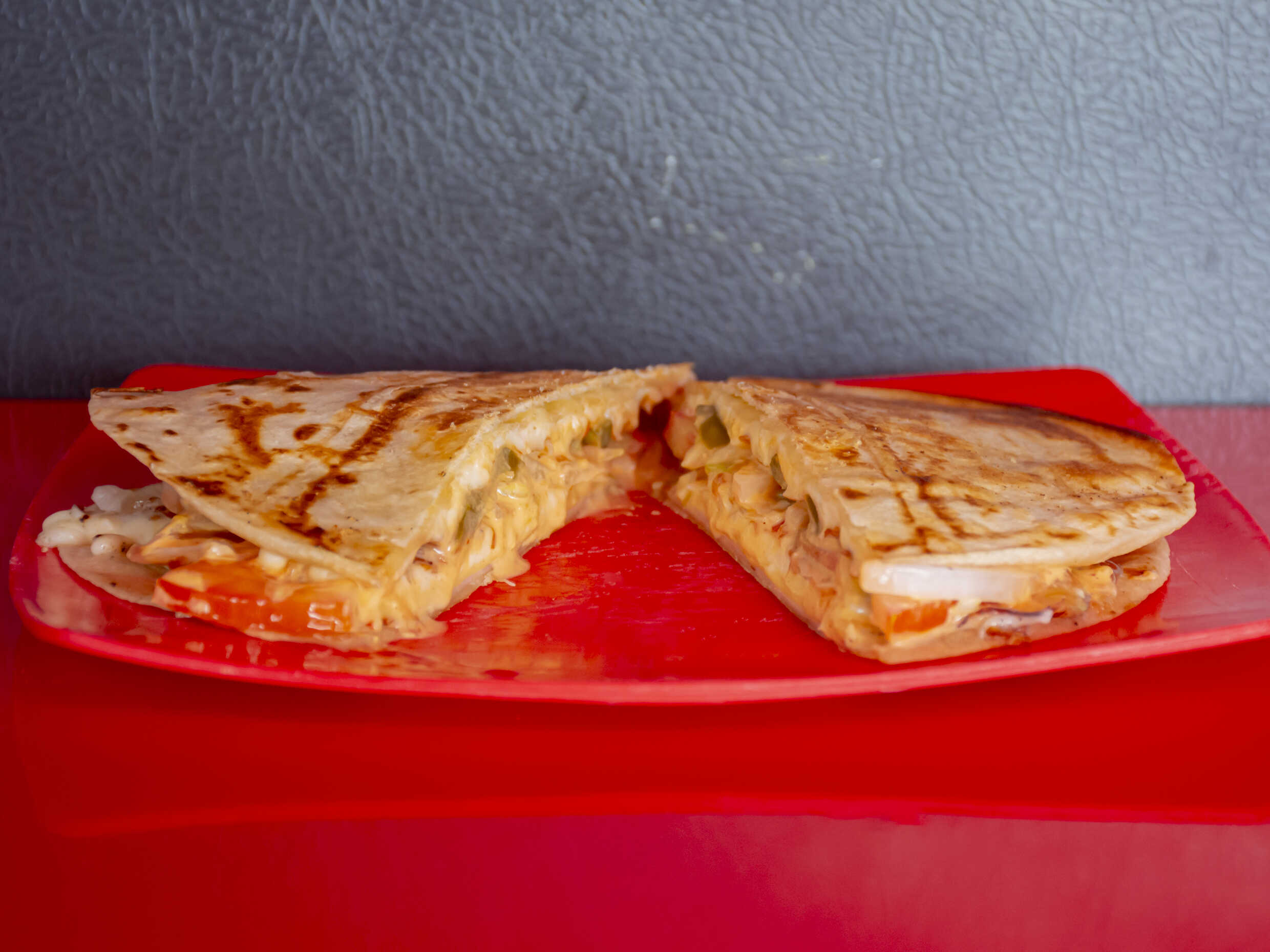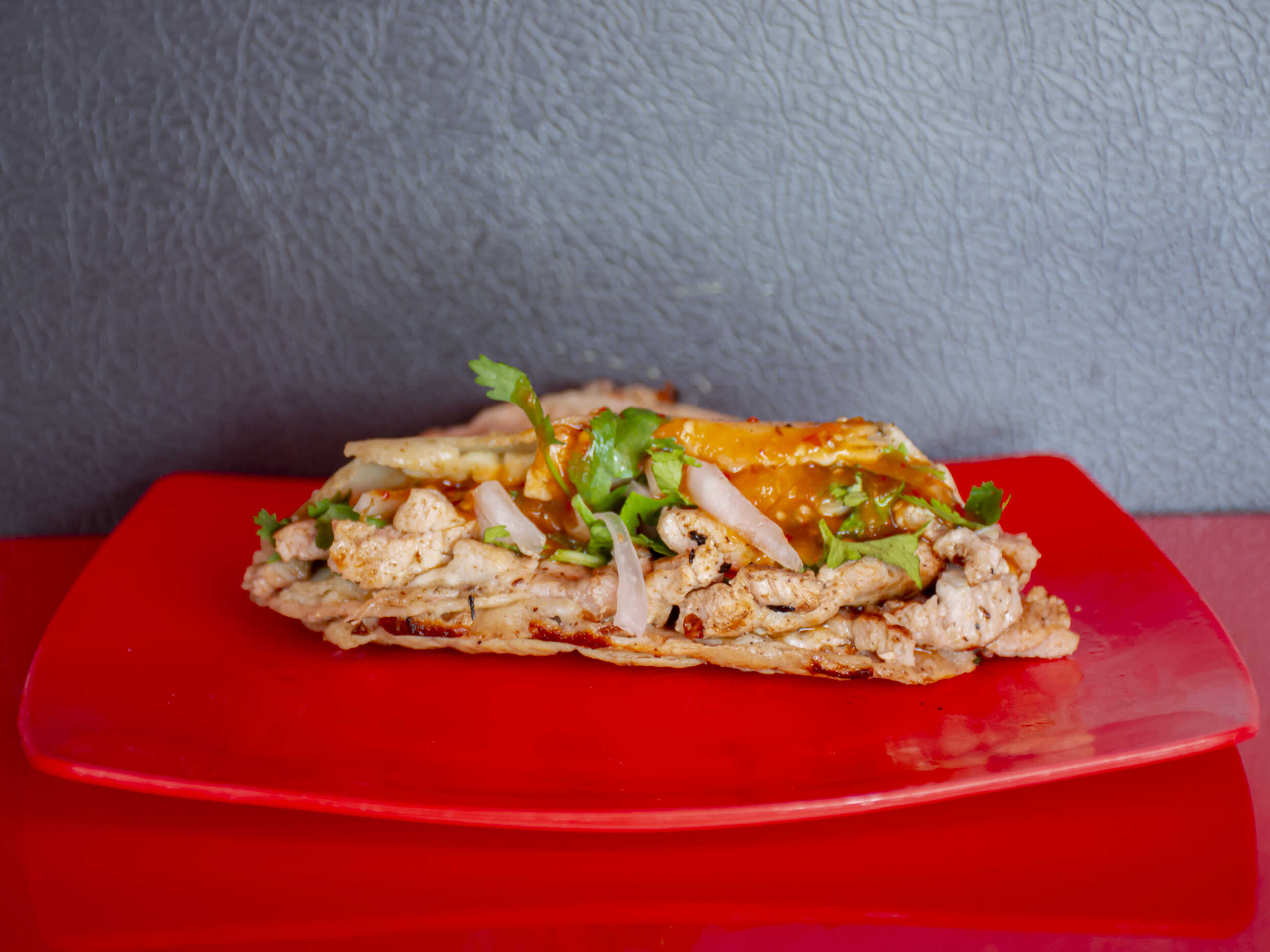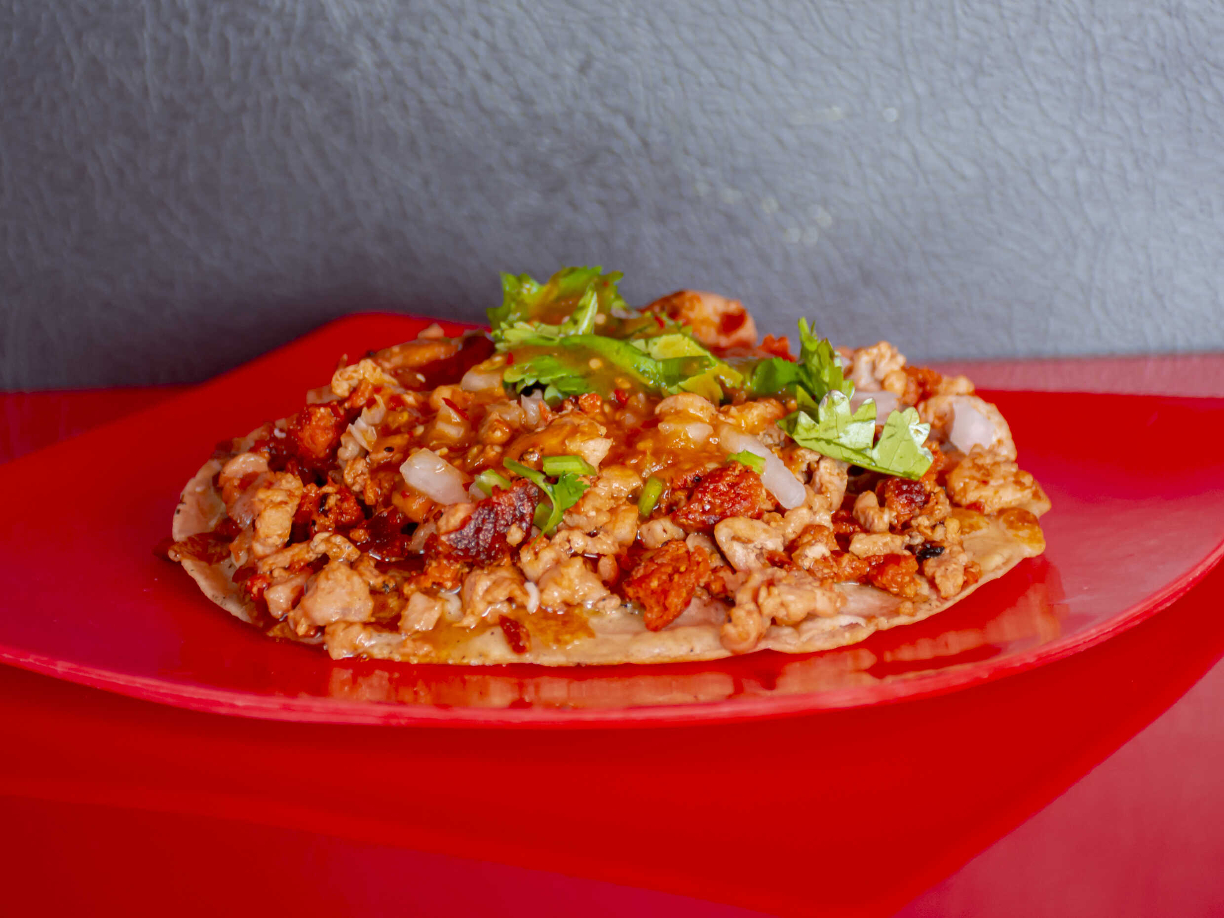 Con carnitas, jamón, queso blanco y queso amarillo.