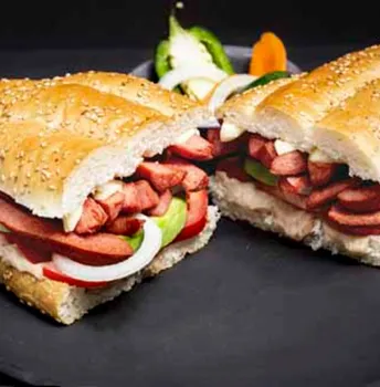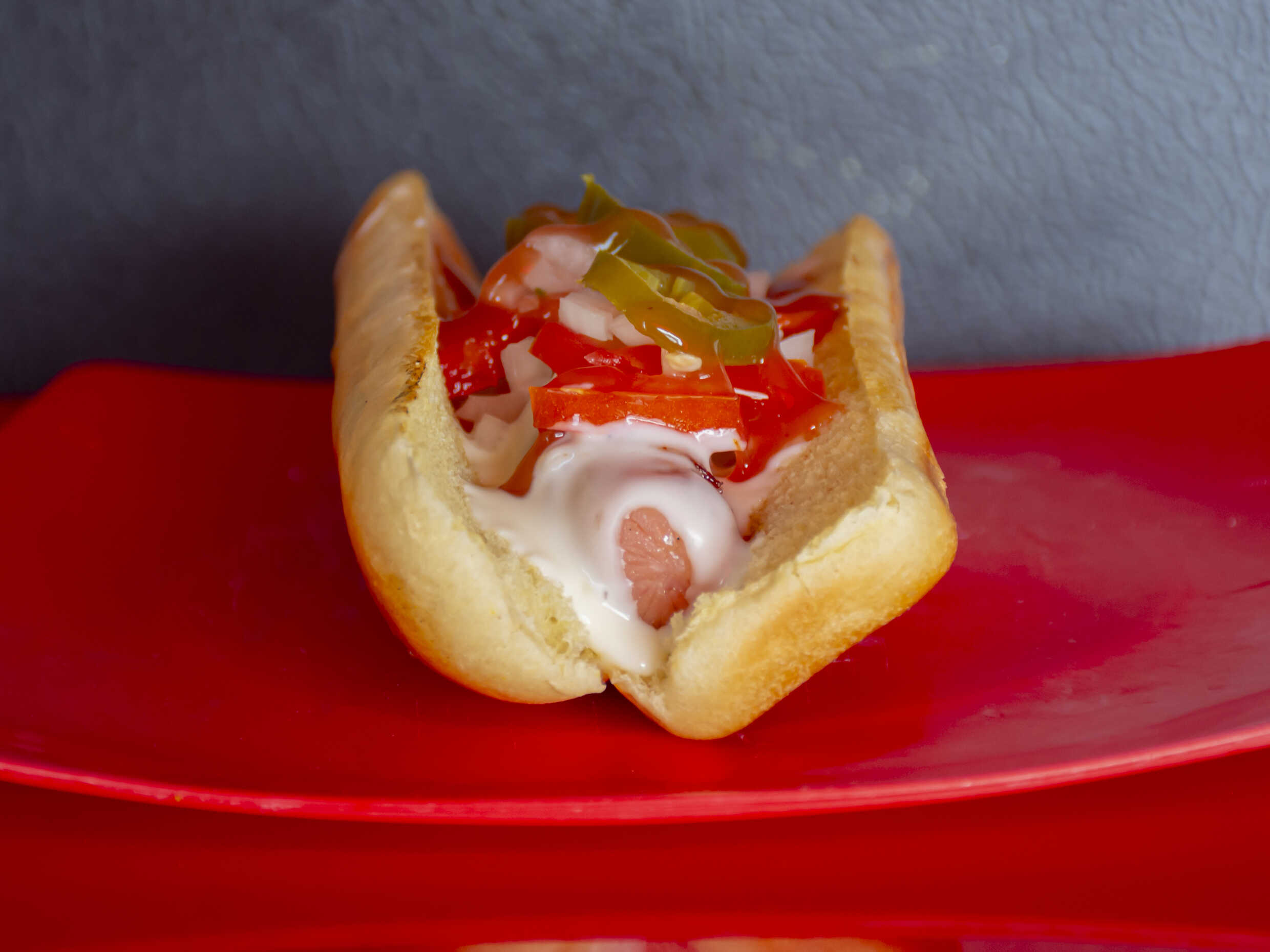 Con salchicha, jamón, queso blanco y queso amarillo.