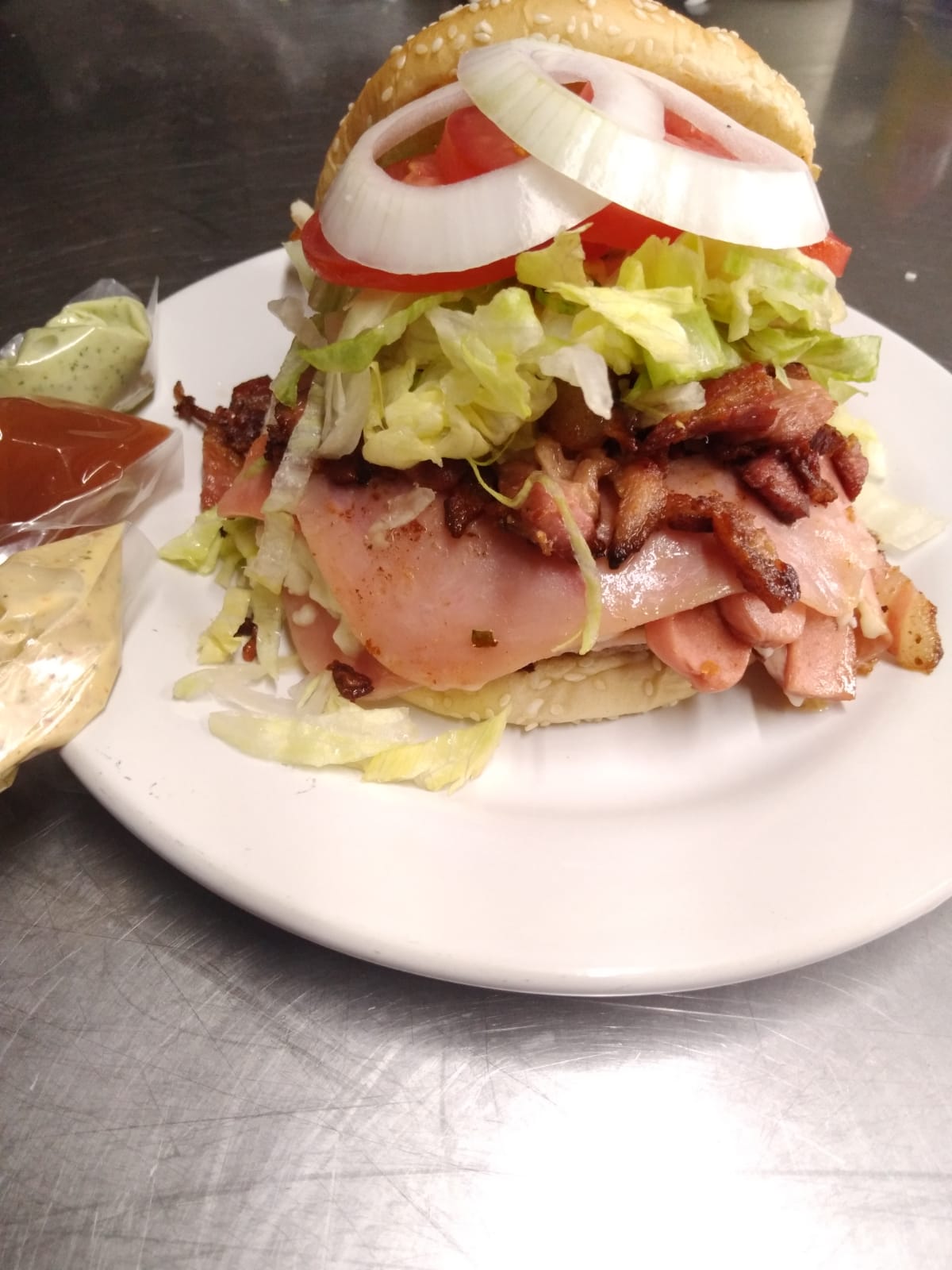 torta media milanesa, aguacate, tomate, cebolla, chile, crema o mayonesa
