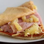 Crepa de 30cm, jamon, queso blanco y piña, acompañada de chimichurri aparte