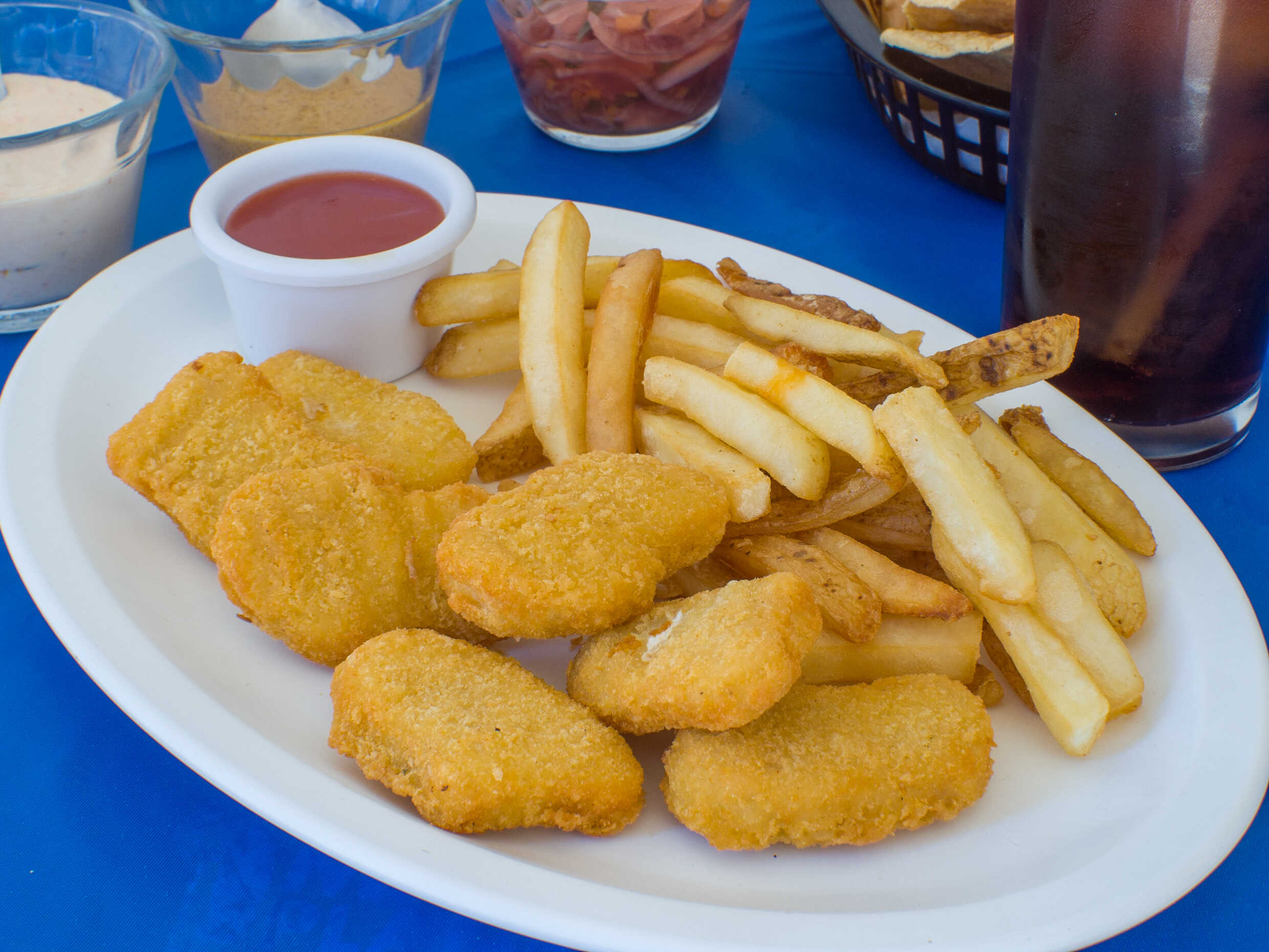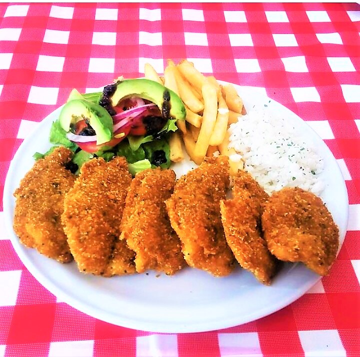 Acompañado con ensalada, arroz blanco y papas a la francesa.