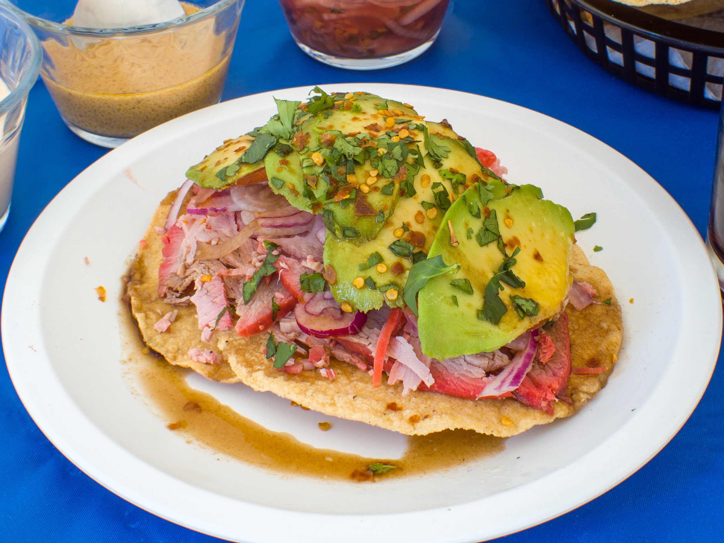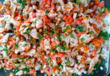 Aguacate, cebolla, jitomate, cilantro, cátsup y salsa.