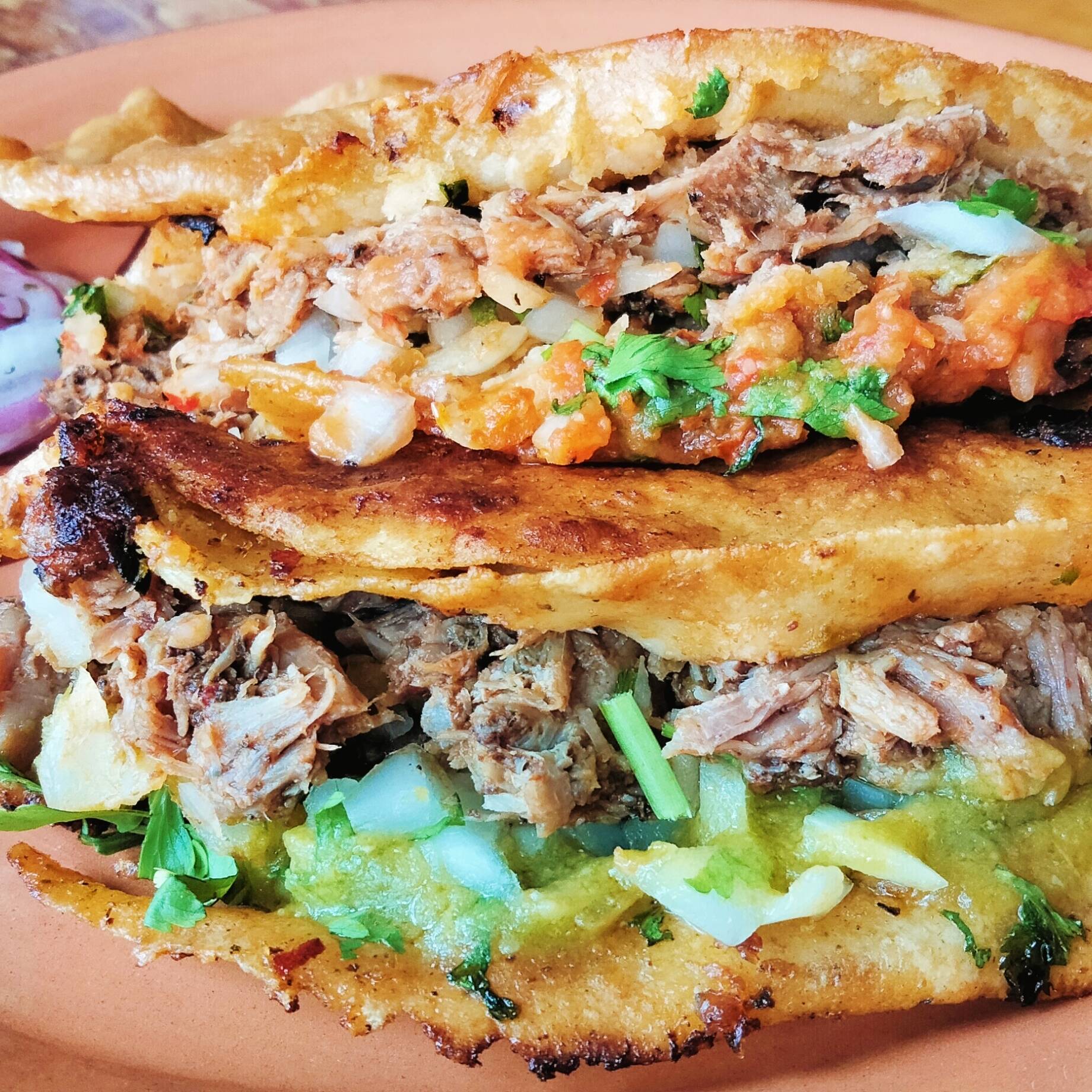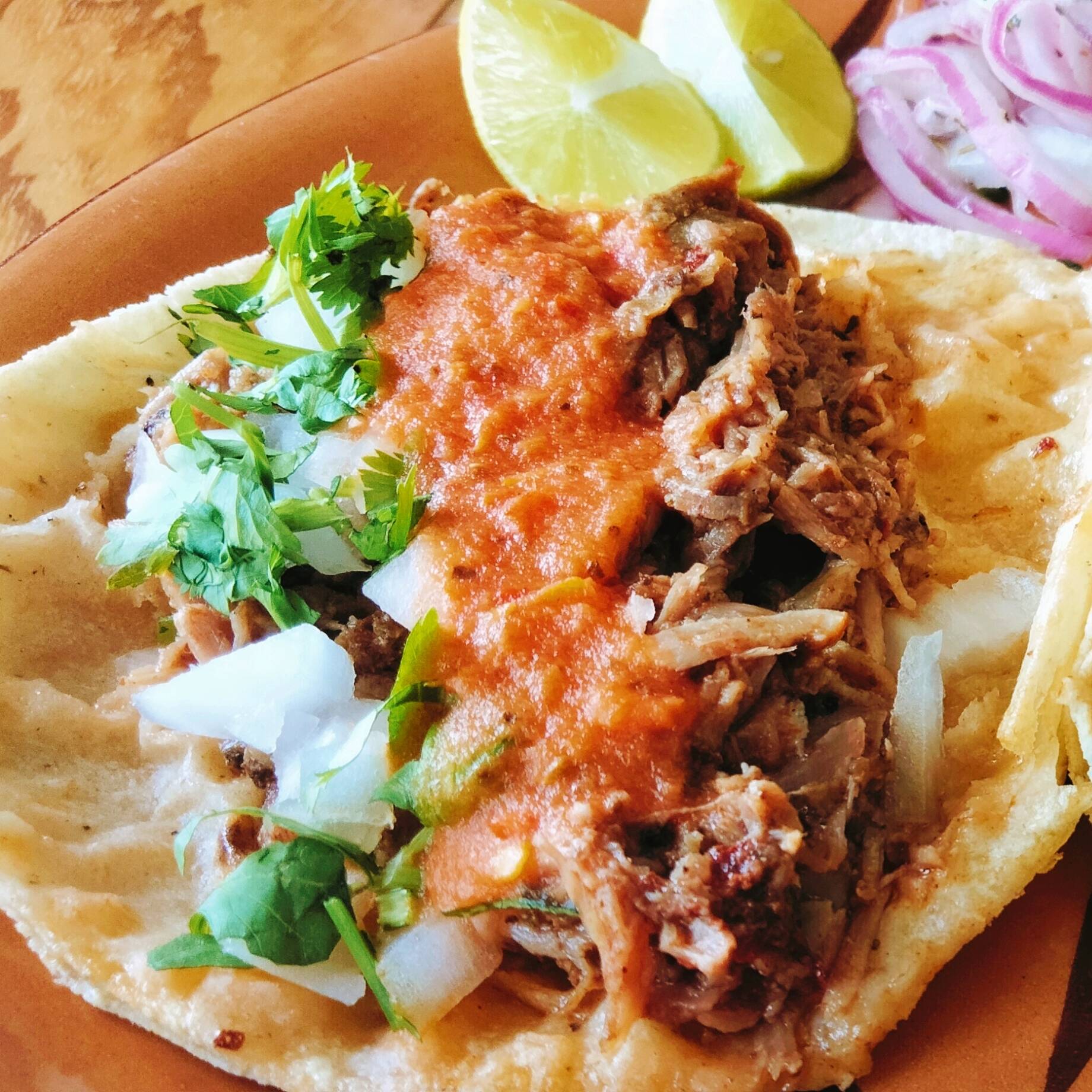 Taco con tortilla de comal con birria