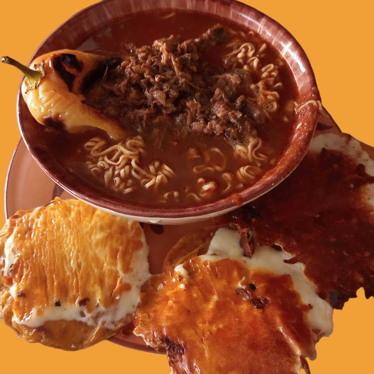 Maruchan con birria y consomé