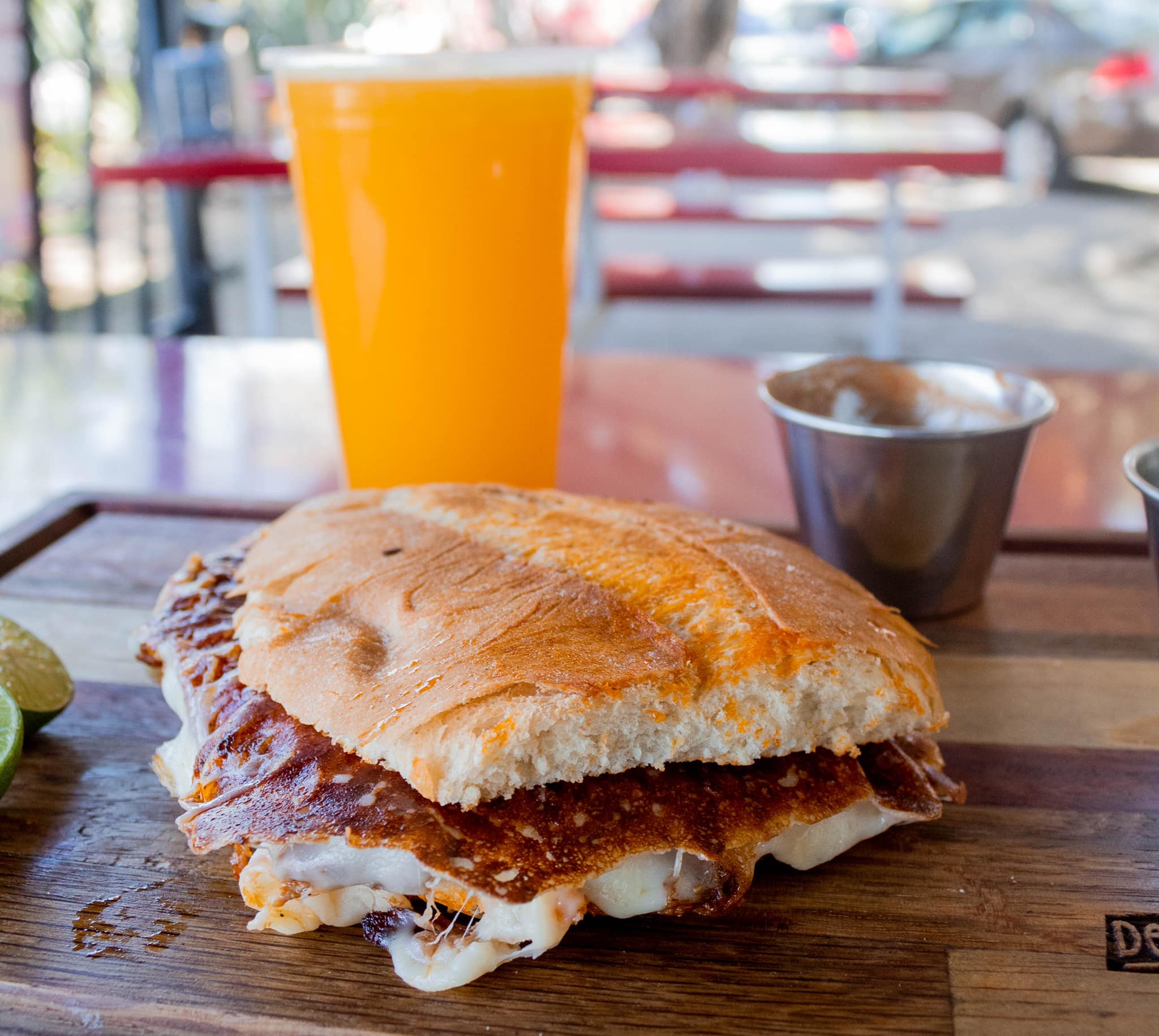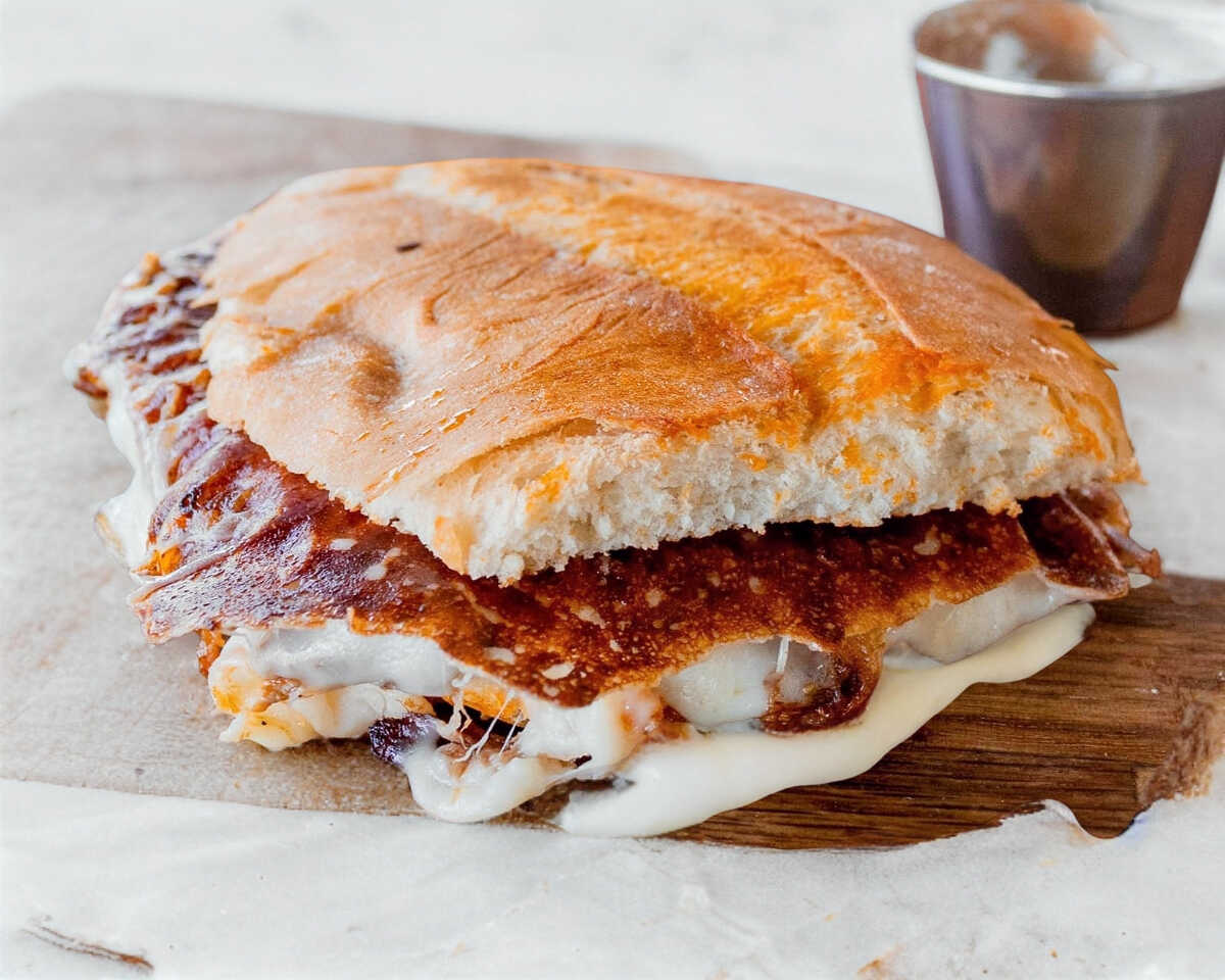 BARBACOA Y QUESO FUNDICO A LA PLANCHA CON UNA TORTILLA ARRIBA