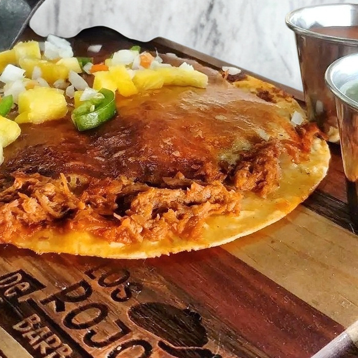 Deliciosa quesadilla de maiz con pastor