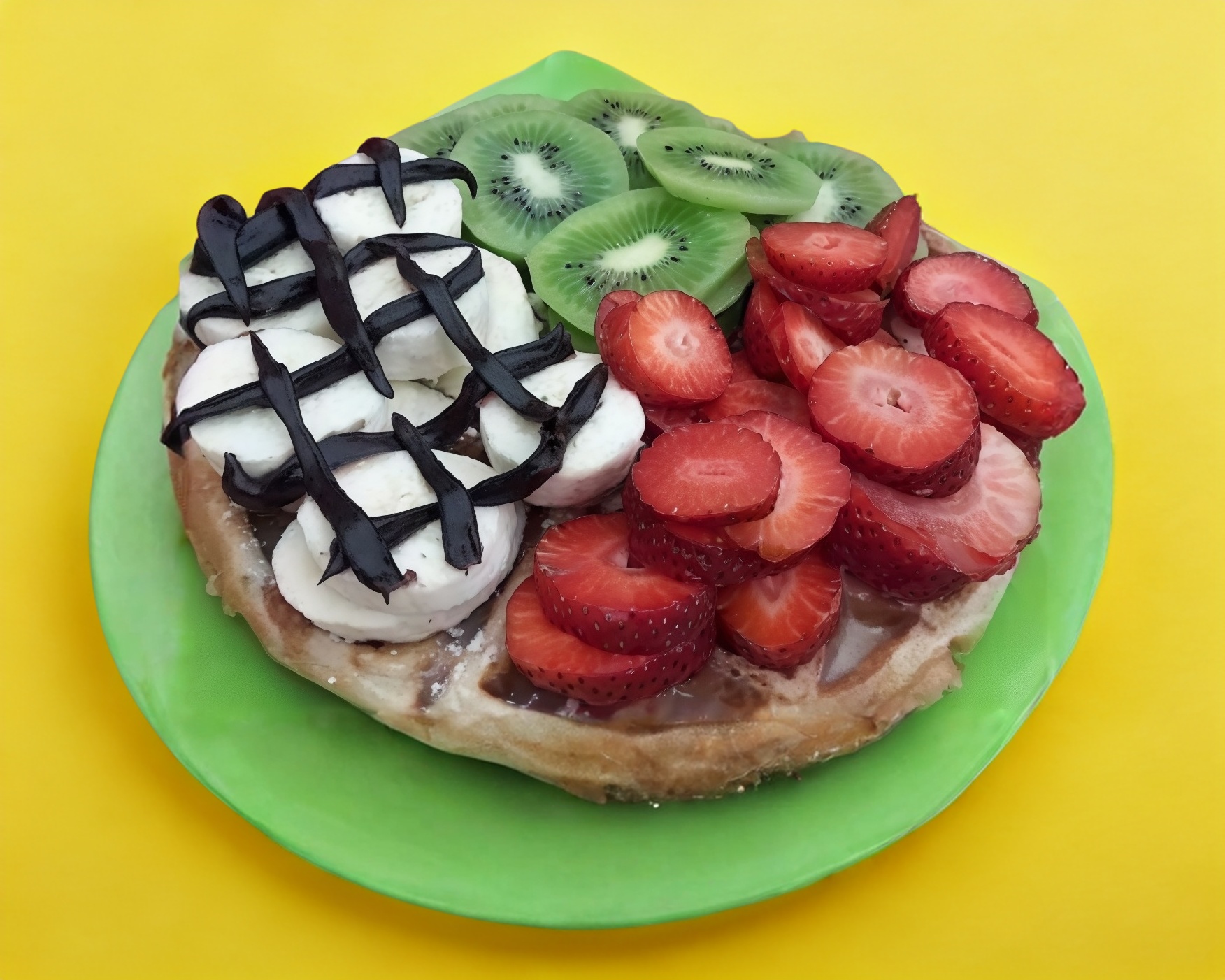 Waffle con Nutella, Plátano, Kiwi y Fresa