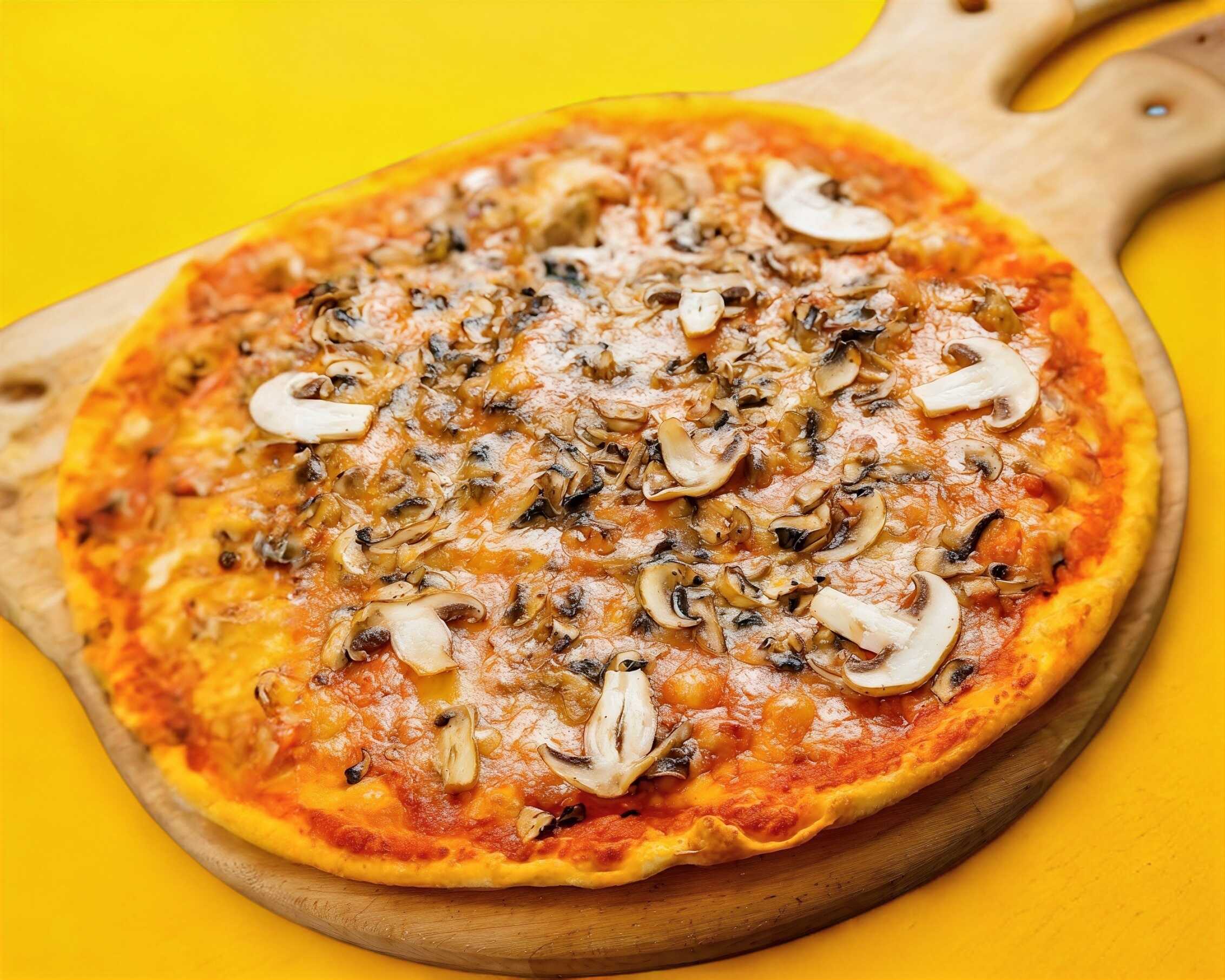 Deliciosa Pizza con masa delgada de Jamón con Champiñones(25cms)