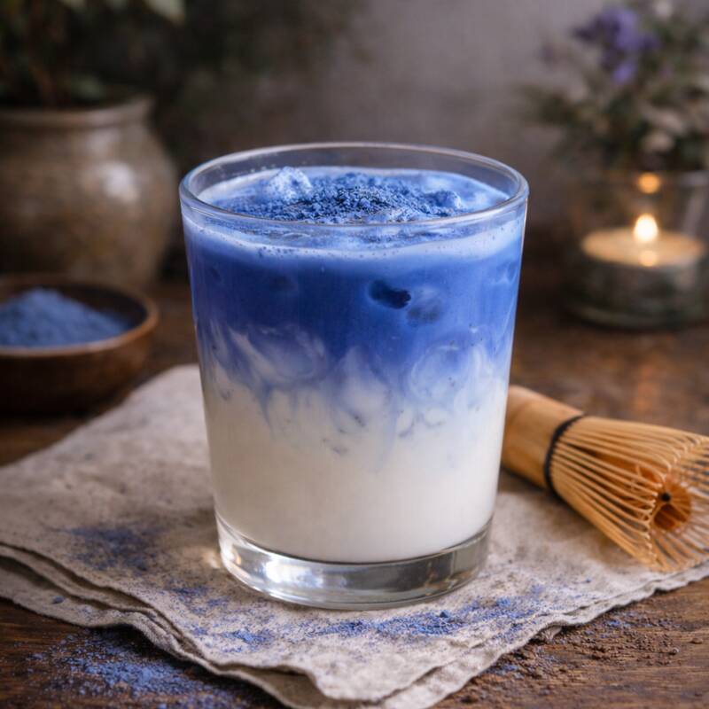 Espumoso y delicioso matcha azul, dulce y cremosito