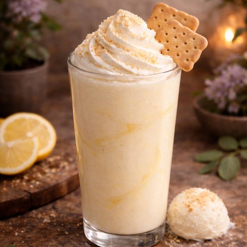 Malteada con base de galletas de limón, helado de vainilla y leche