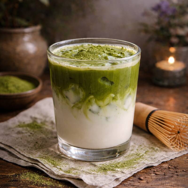 Refrescante frappe con base de matcha y leche