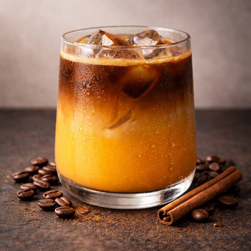 Frappe de calabaza y especias de temporada mezclado con espresso