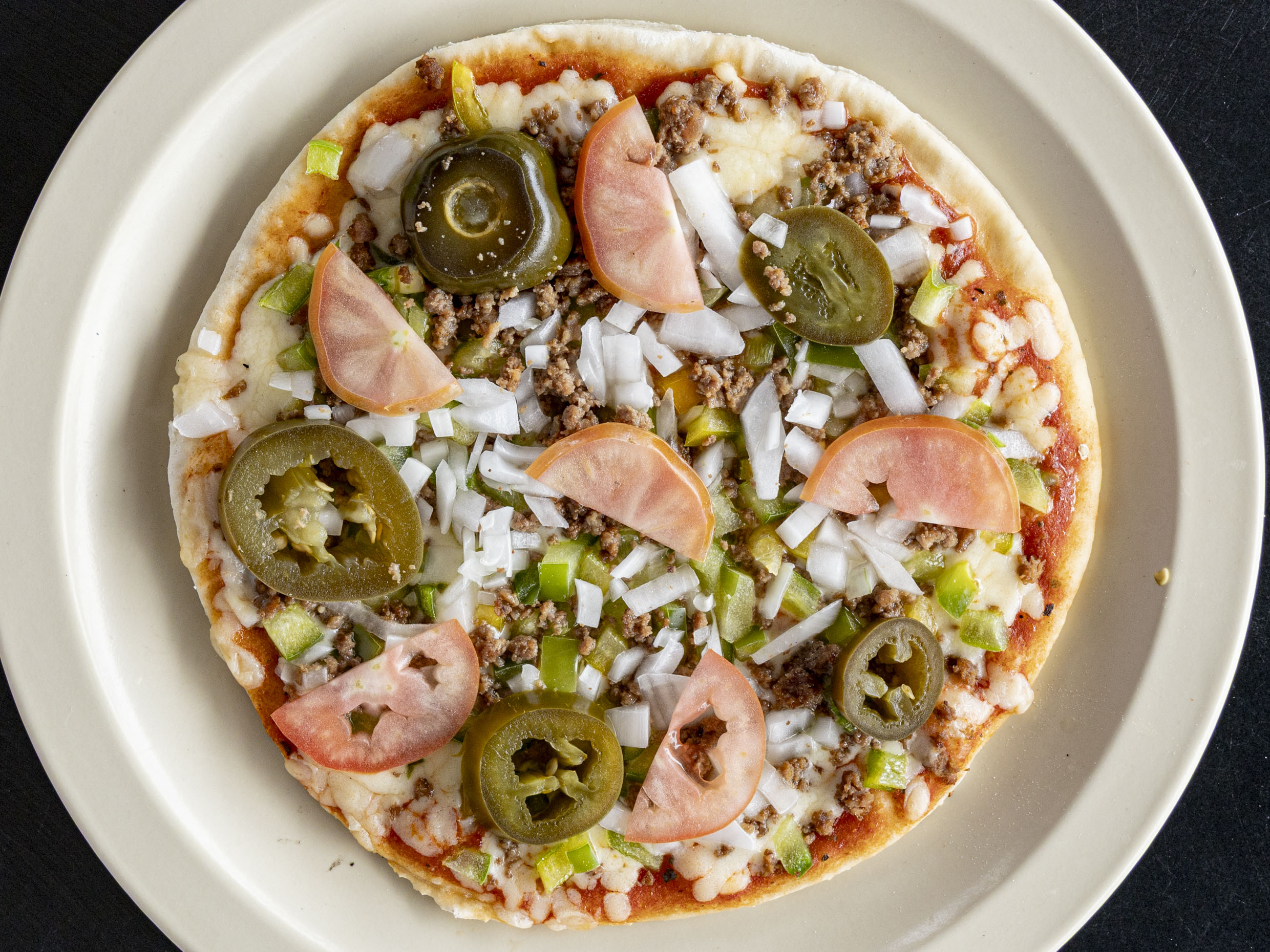 Carne molida, jitomate, jalapeño, P Morron y Cebolla