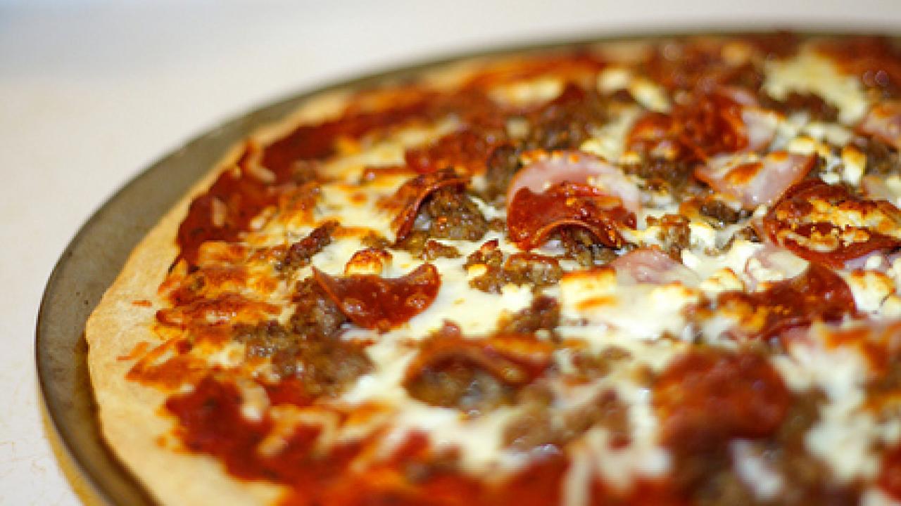 Jamon, Champiñon, CArne Molida, Tocino, Aceituna negra, Cebolla Asada y Peperoni