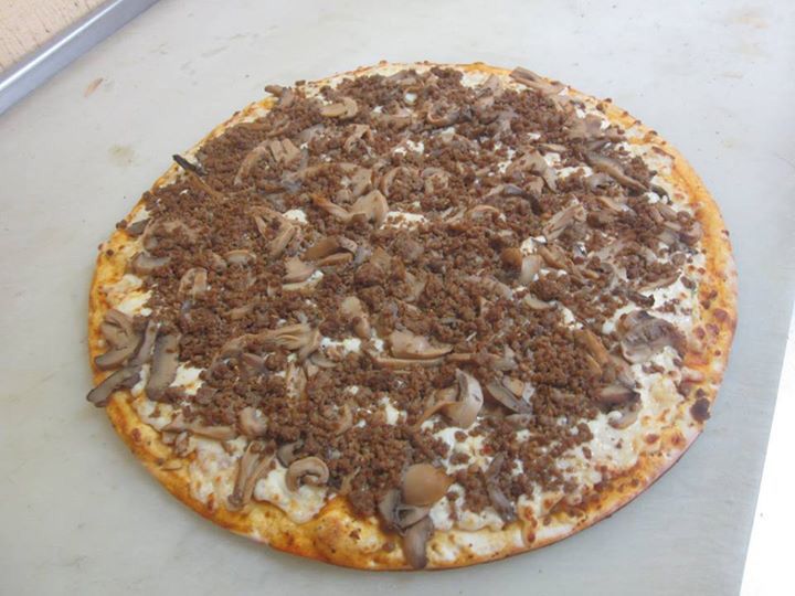 Carne molida, pimiento morrón, cebolla, rajas de jalapeño, jitomate, doble queso.