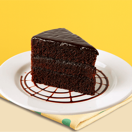 Rebanada de Pastel de chocolate esponjoso y húmedo, con intenso sabor a cacao.