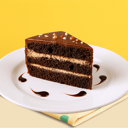 Rebanada de Pastel crocante de chocolate con capas crujientes y sabor intenso a cacao.