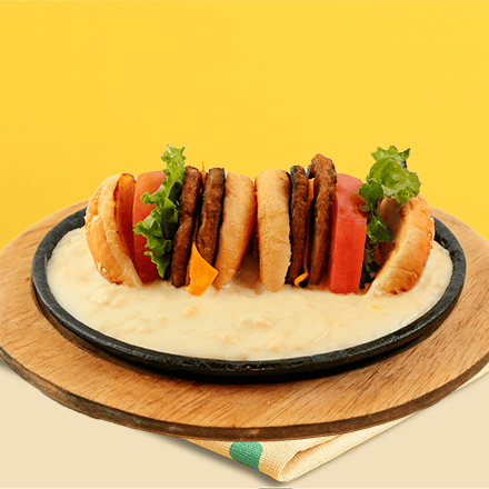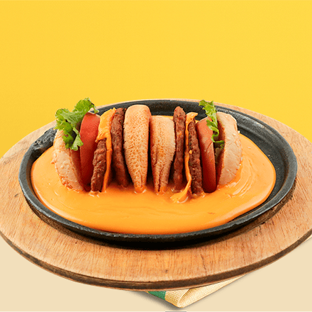 Doble porción de queso fundido con carne de res a la parrilla y vegetales frescos.