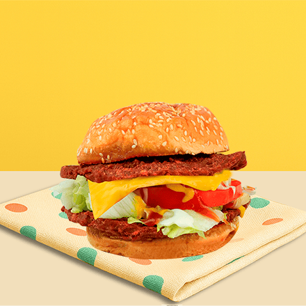 150 gr de doble carne de res, jugosa y abundante queso cheddar fundido. lechuga italiana, jitomate, cebolla y pepinillos.
