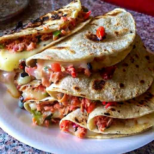 Tortilla de harina con queso y Marlin guisado a la mexicana