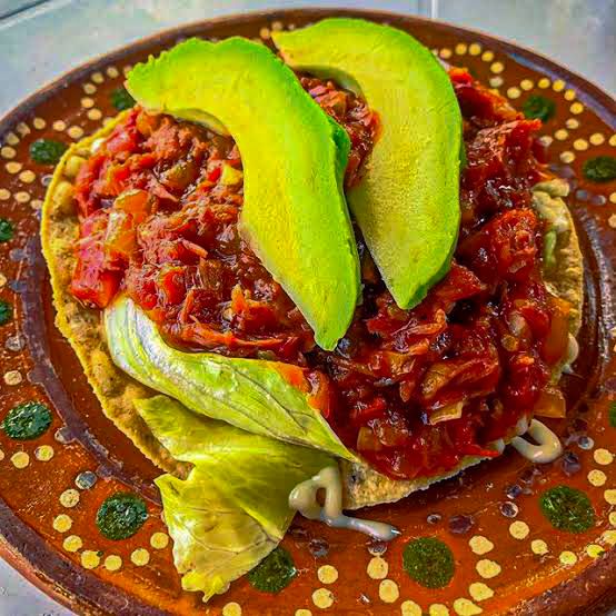 Doble tortilla de maíz con Marlin guisado a la mexicana
