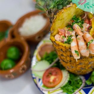 Piña rellena de mariscos