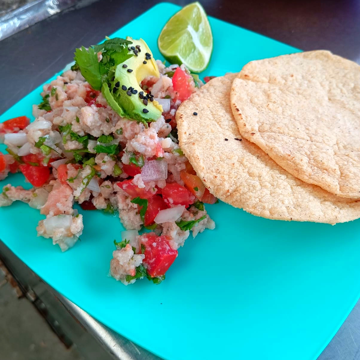ceviche preparado ,limon,jitomate,cebolla,cilantro