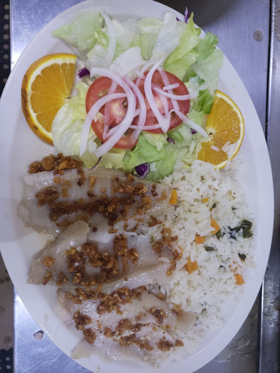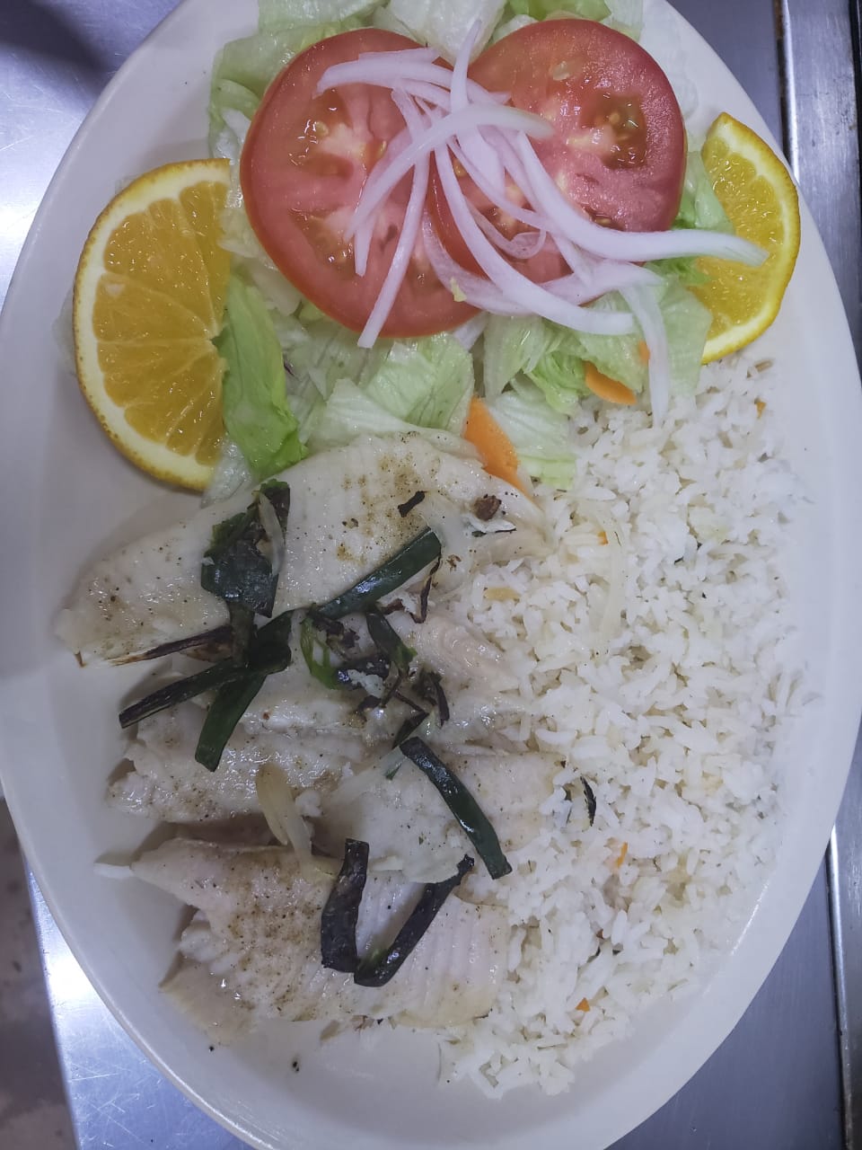 3 Piezas con ensalada y arroz.