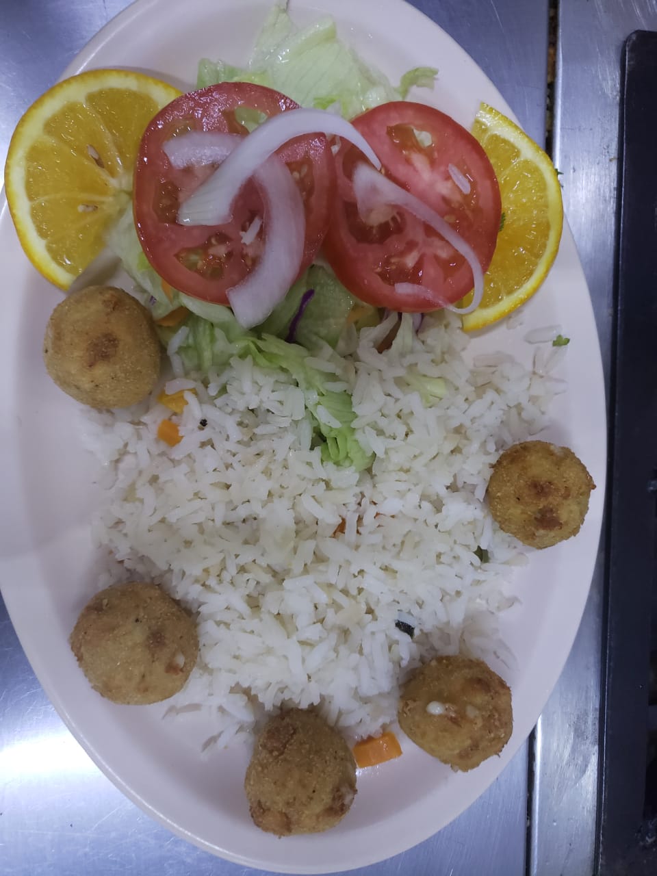 3 Piezas con ensalada y arroz.